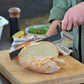 This Non-Serrated Bread Knife cuts through soft and crusty bread alike, with true ease. Master Shin's bread knife relies solely on sharpness to move through the bread, resulting in ease of use and a much smoother cut.