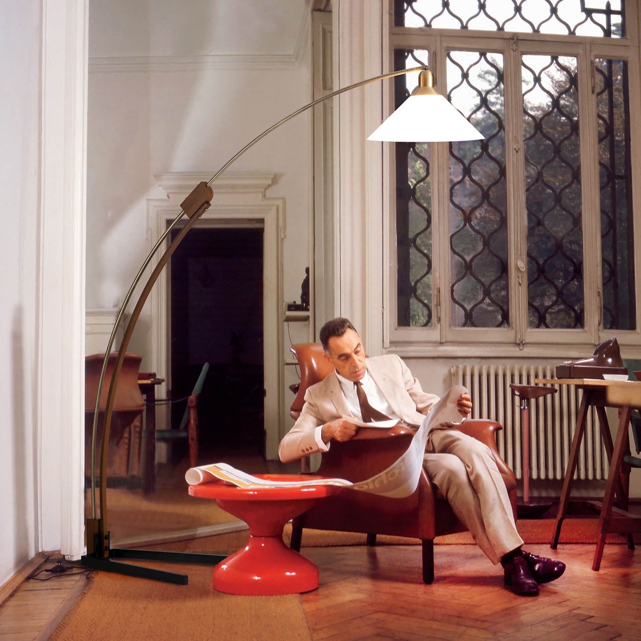 Originally crafted from red oak, bendable Italian poplar, polished brass & blow molded Lucite, The Melmar Arc floor lamp has been reissued from the Nova vault. This reissue includes all the mid-century style while boasting modern updates for today's discerning tastes. Adorned with a rich dark brown wood and weathered brass finish, complementing its iconic bent wood styling, the Melmar radiates an aura of refined elegance. The Lucite cone-shaped shade follows the original design while skillfully shading the bulb, casting a warm and inviting glow that enchants any space. The sturdy base ensures that once positioned, the lamp stays in place. Melmar is equipped with a dimmer switch, providing just the right light to read by, enjoy a warm glow or entertain in your living room.
