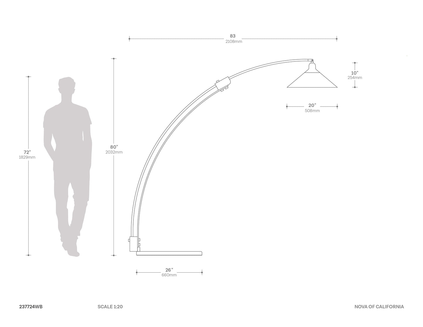Melmar Arc Floor Lamp Weathered Brass and Walnut Dimmer Switch V-base sku: 21266WB | Nova California