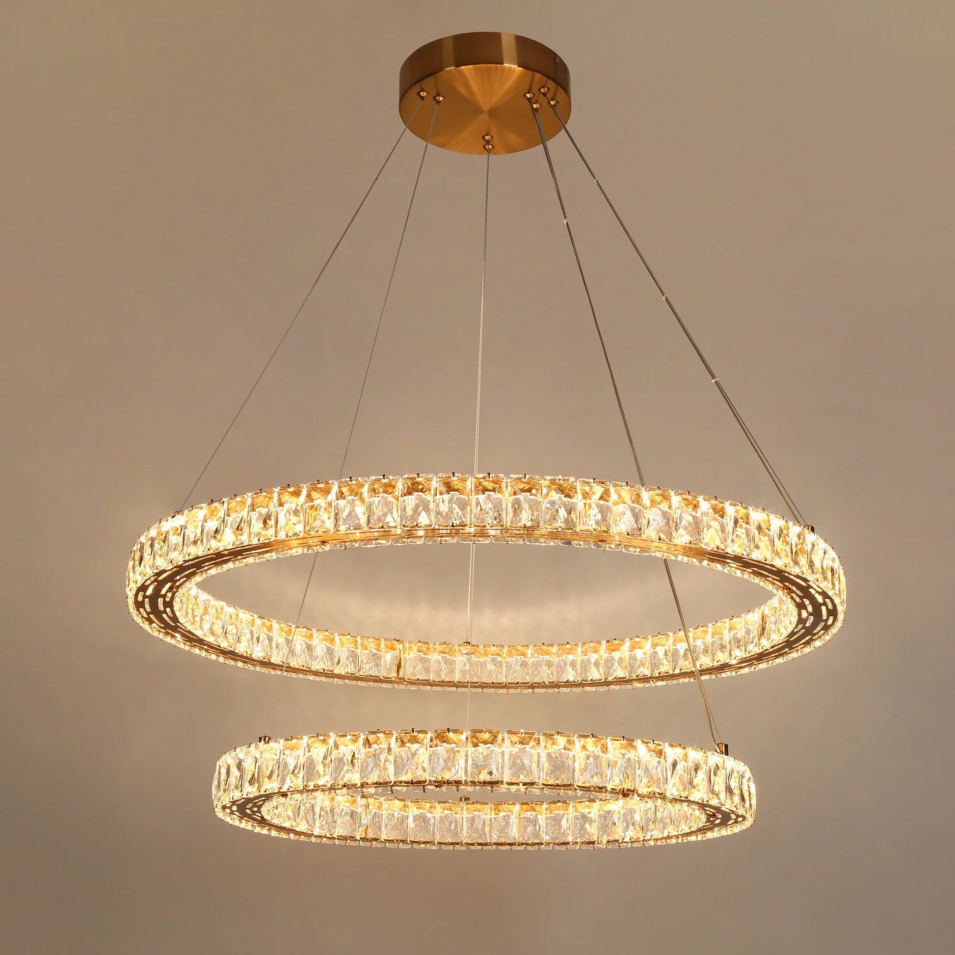 Metorcalipia 30" Two-Tier Crystal & Brass LED Chandelier (HA05130) - Add a Touch of Dynamic Glamour - LNC Home