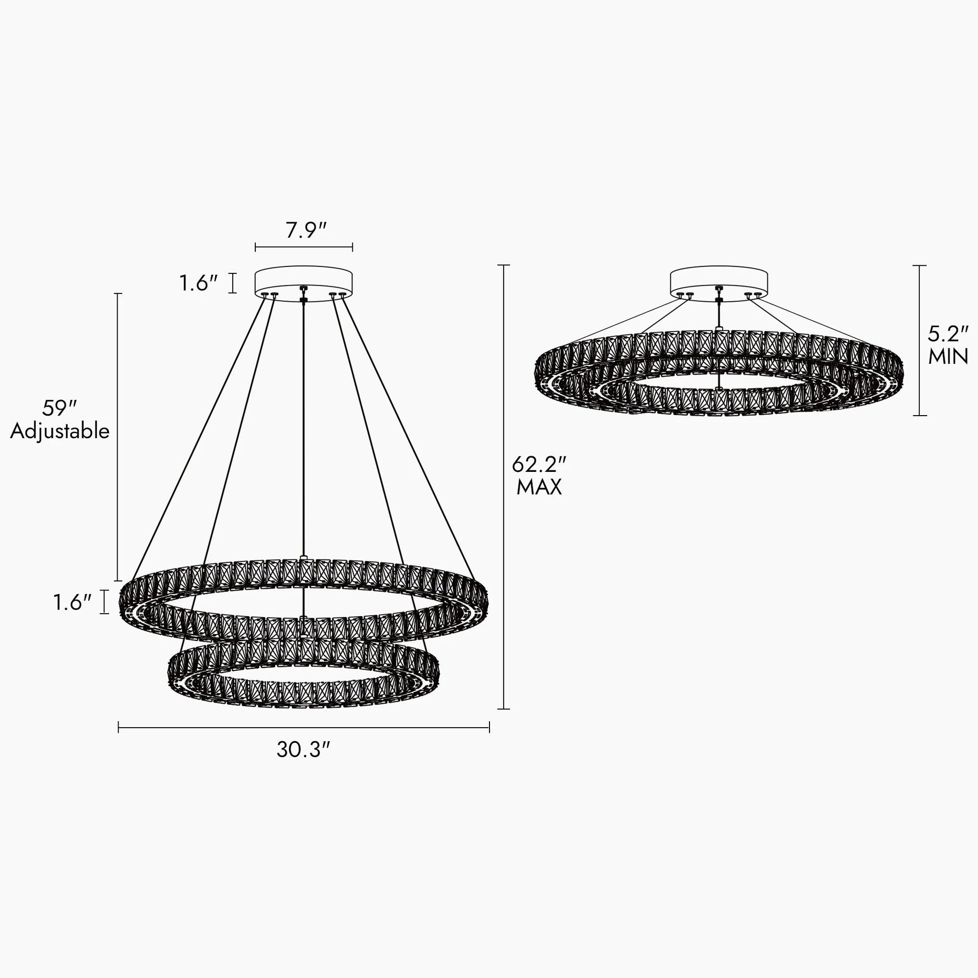 Metorcalipia 30" Two-Tier Crystal & Brass LED Chandelier HA05130 by LNC Home