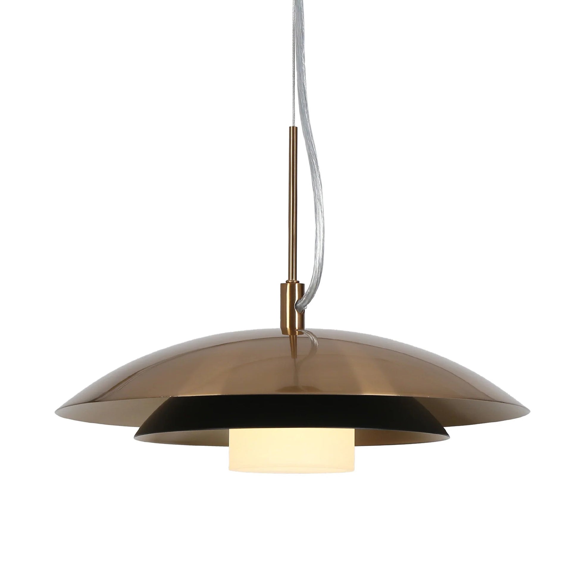 The Modern Black & Brass Dome Pendant Light (HA05053) is a perfect choice. This contemporary fixture offers a sleek, minimalist design with a matte black exterior and a gleaming brass interior, adding a touch of sophistication to any space.