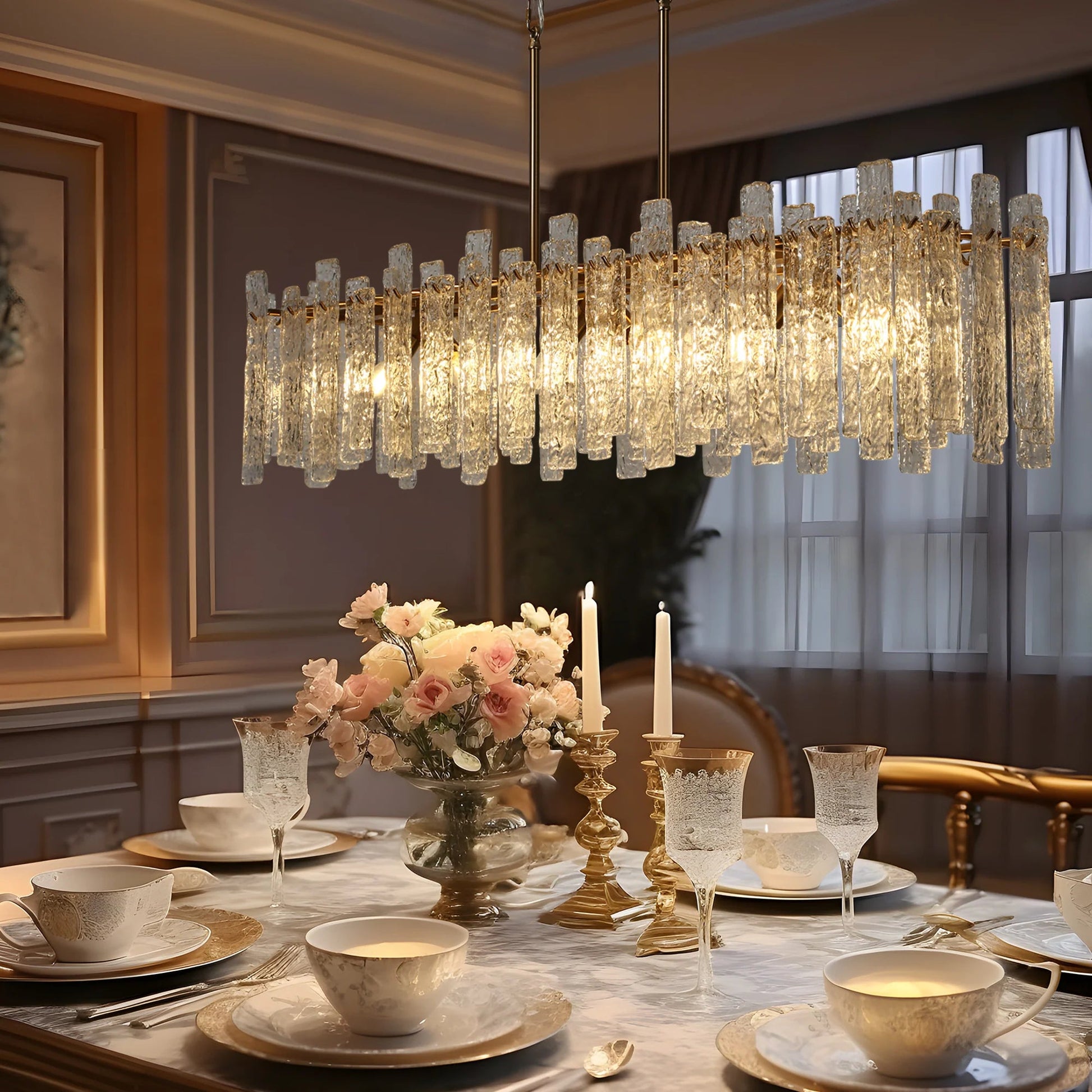 Engaveric 6-Light 39" Glass Brass Rectangle Pendant Light by LNC Home