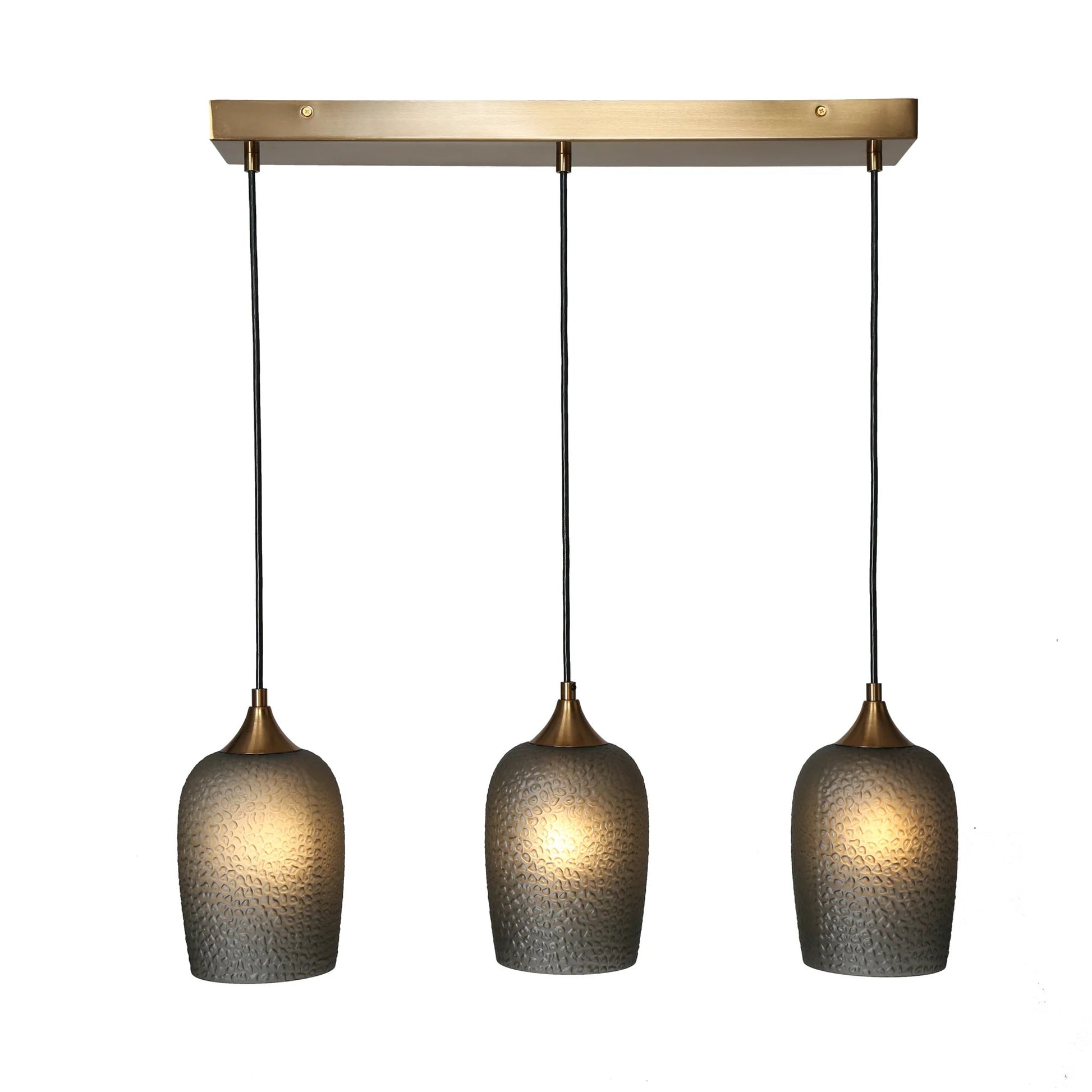 Bring a touch of modern elegance to your home with the Apphia 3-Light Linear Pendant Light. This stunning fixture features a sleek, linear design with three textured gray glass shades accented by a warm brass finish. It's the perfect way to add a touch of sophistication and style to your kitchen island, dining room table, or entryway.