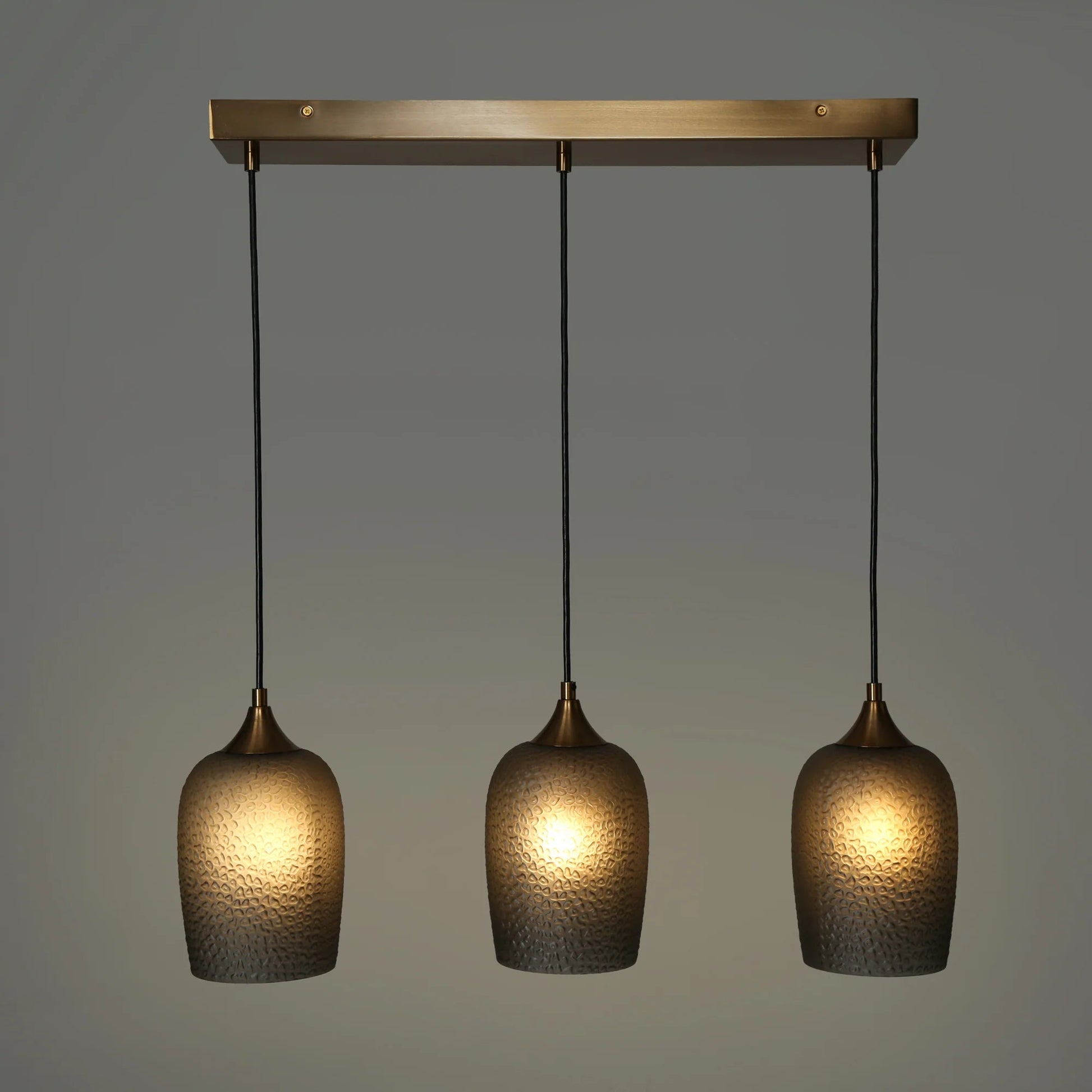• Warm and Inviting Glow: Three textured gray glass shades diffuse the light, creating a soft and welcoming ambiance.