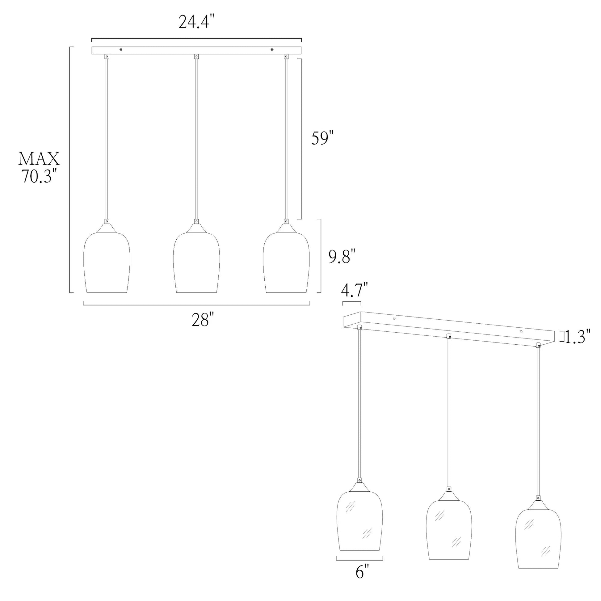• Bulb Requirements: 3 x E26 Medium base, Type A bulbs (not included), max 60 watts per bulb