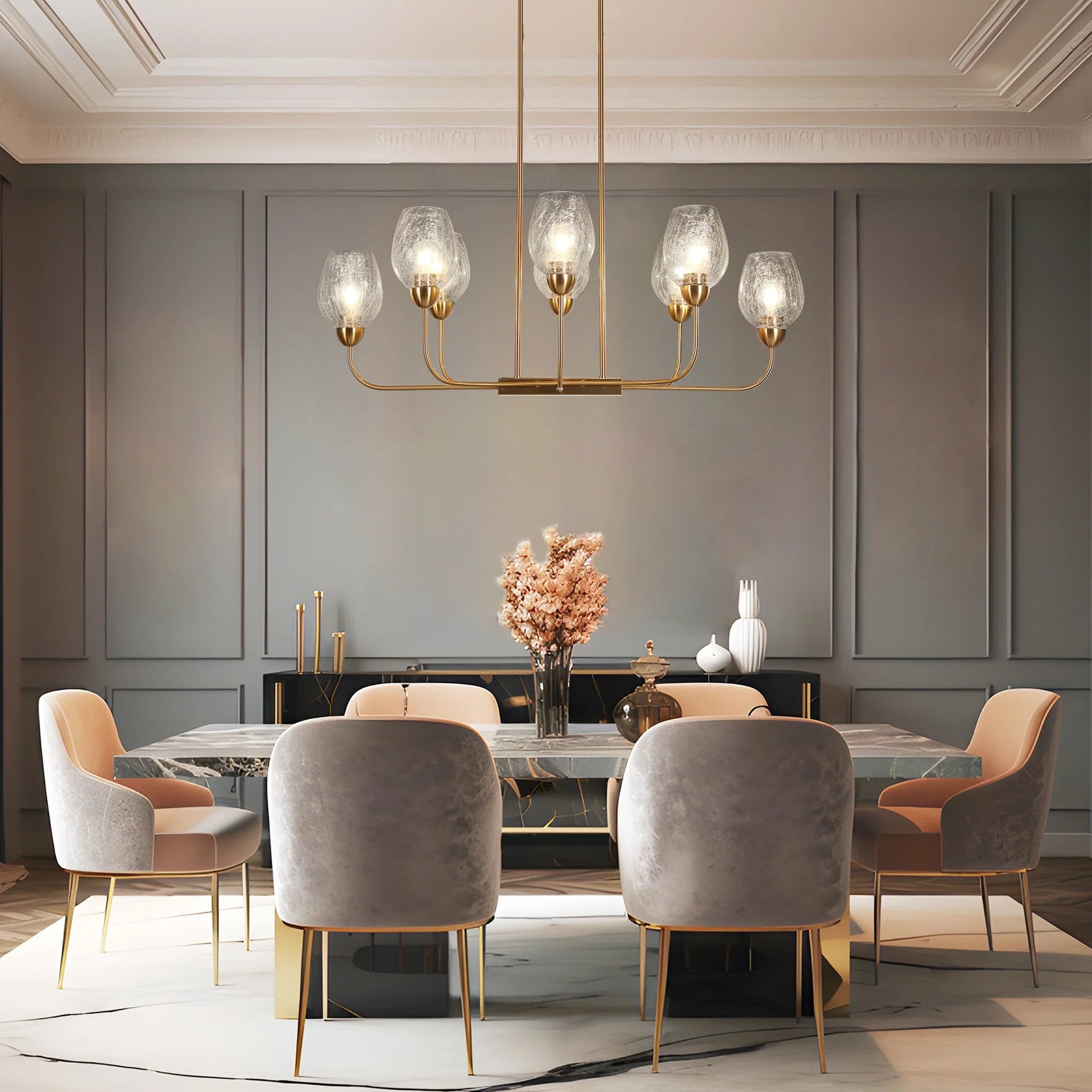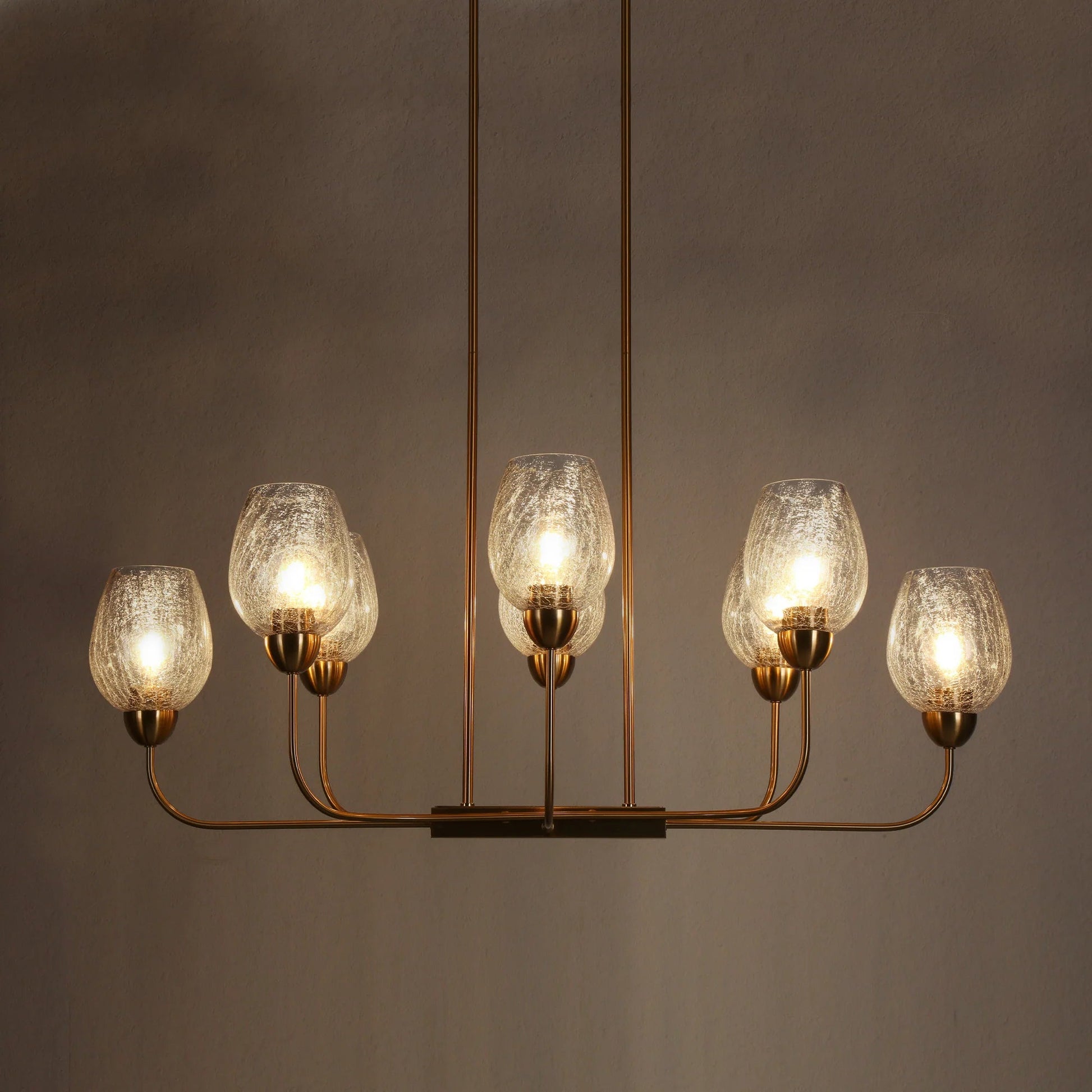 • Unique Cracked Glass Design: The eight goblet-shaped shades are crafted with natural cracked glass, maximizing light refraction for a dazzling display. This distinctive feature adds a touch of artistry and enhances the overall ambiance of your space.