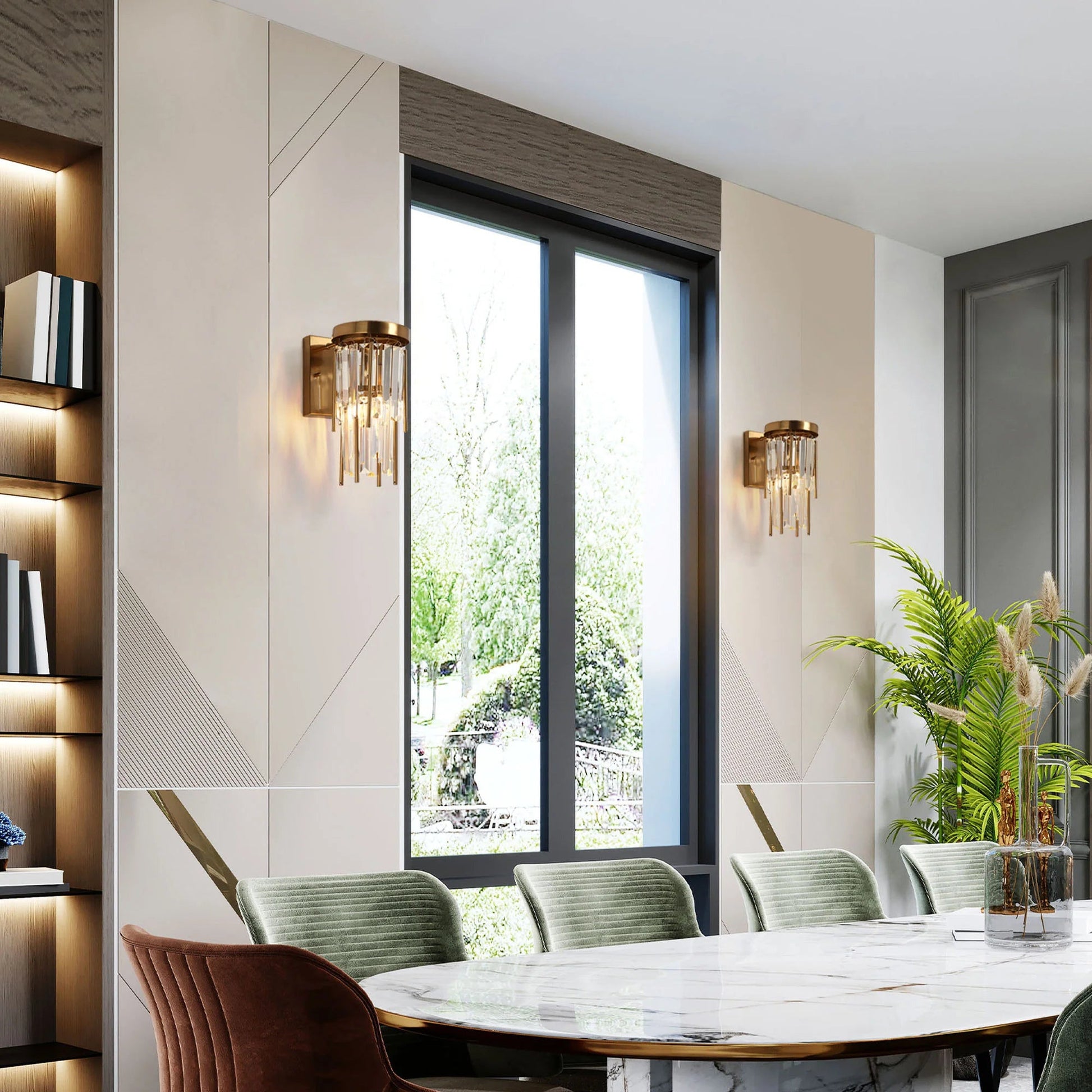 • Glamorous Design: The Athean sconce boasts a captivating design with cascading crystals and a sleek brass finish, making it a statement piece in any room.