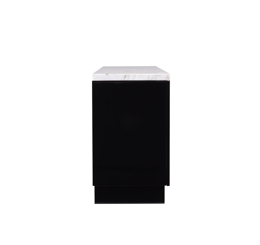 A striking piece for your dining room, the Kingsley Buffet is a dream come true. The black high gloss finish is dramatic and bold against the delicate rose gold accents. A thick marble top finishes the piece with a flair. Four cabinets house a host of dining essentials. Perfect for your modern, contemporary space, this piece is a must have.