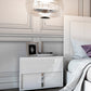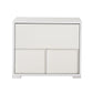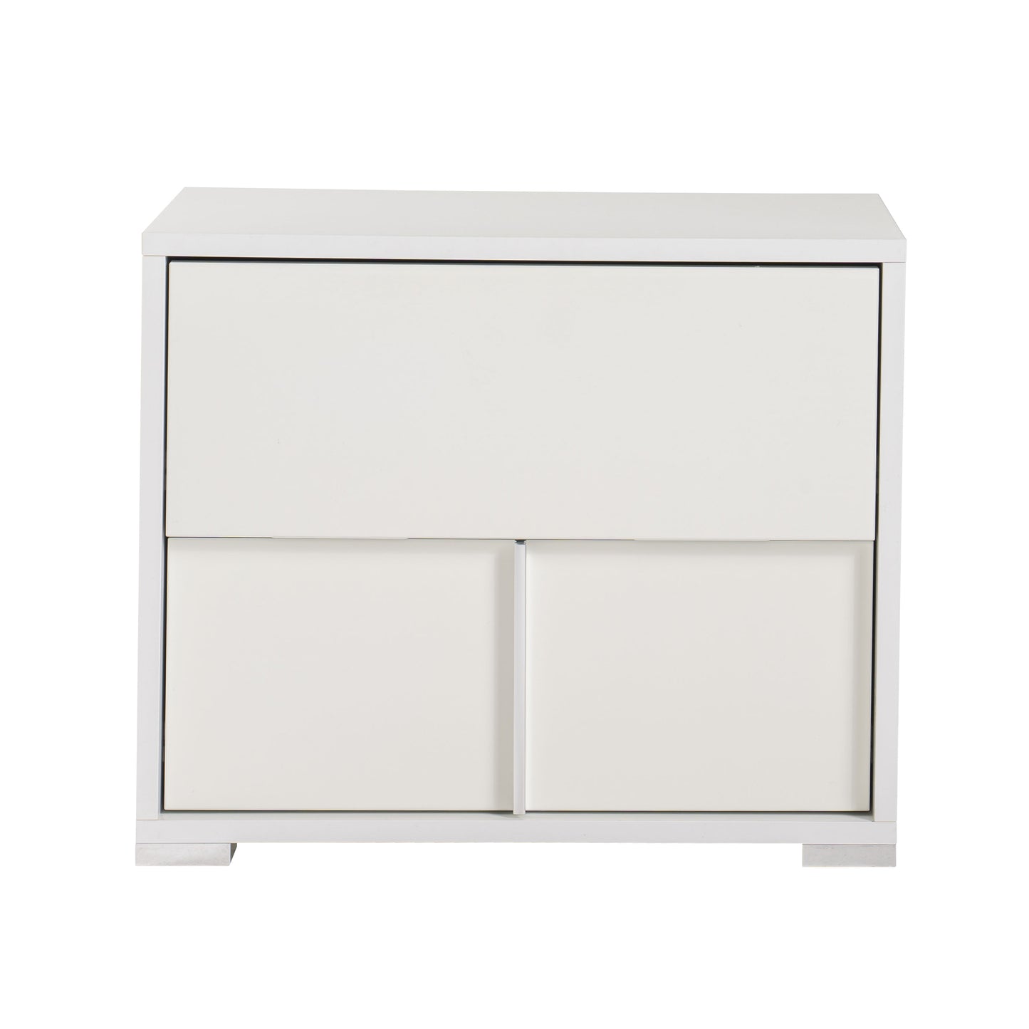 The Modrest Nicla Italian Modern White Nightstand shows fluidity in design featuring a sleek white gloss finish with chrome accents as pulls. It features 2 soft-closing drawers. Fully assembled, this modern nightstand stands on cubed chrome legs and has a dimension of W24" x D16" x H21".