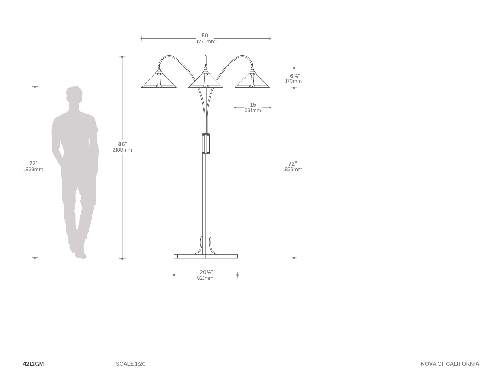 Natural Mica 3-Light Arc Floor Lamp 86" Charcoal Gray Wood Gunmetal Silver Mineral Mica Dimmer Switch X-base sku: 4212GM | Nova California