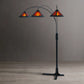 The elegantly arched 3 light floor lamp features a trio of warm Mica shades, elegantly balanced on a dark wood base with intricate bronze detailing. This captivating interplay of elements creates a look steeped in historic charm, wrapped in the embrace of warm, inviting light. Each Mica shade holds its unique personality, showcasing slight variations in tone and pattern, making every lamp truly one-of-a-kind. Picture yourself curled up on the sofa, immersed in the cozy warmth and ambient glow emanating from the Mica shades, as they transform your space into a haven of comfort