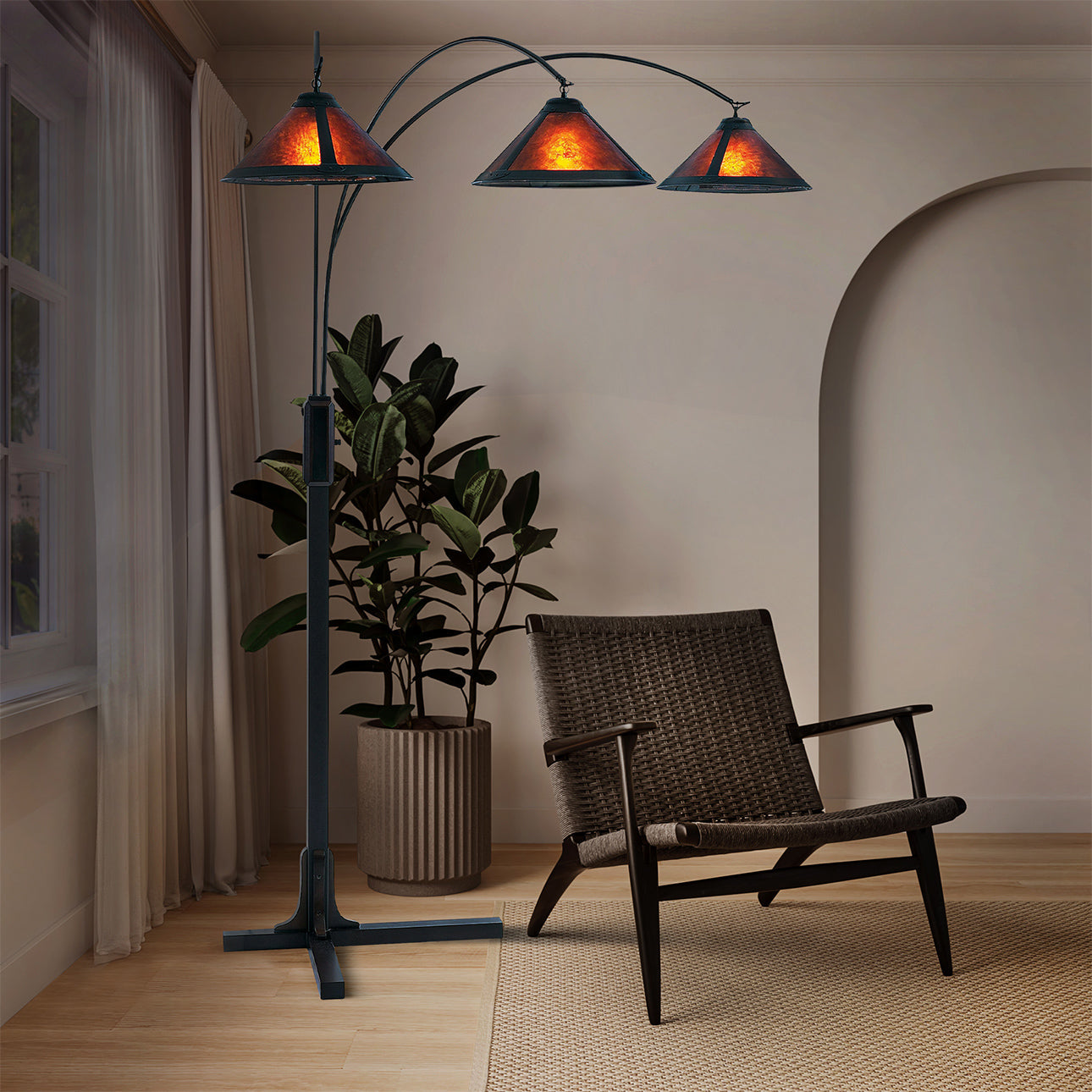 Natural Mica 3-Light Arc Floor Lamp 86" Espresso Wood Bronze Amber Mineral Mica by Nova California
