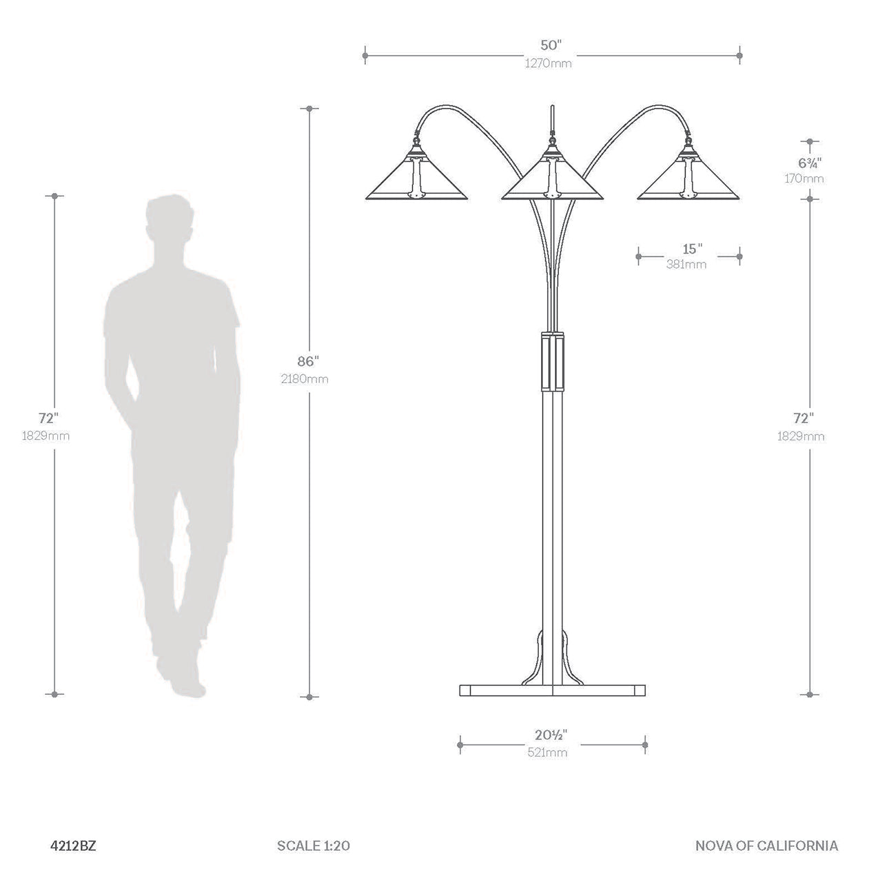 Natural Mica 3-Light Arc Floor Lamp 86" Espresso Wood Bronze Amber Mineral Mica Dimmer Switch X-base sku: 4212BZ | Nova California
