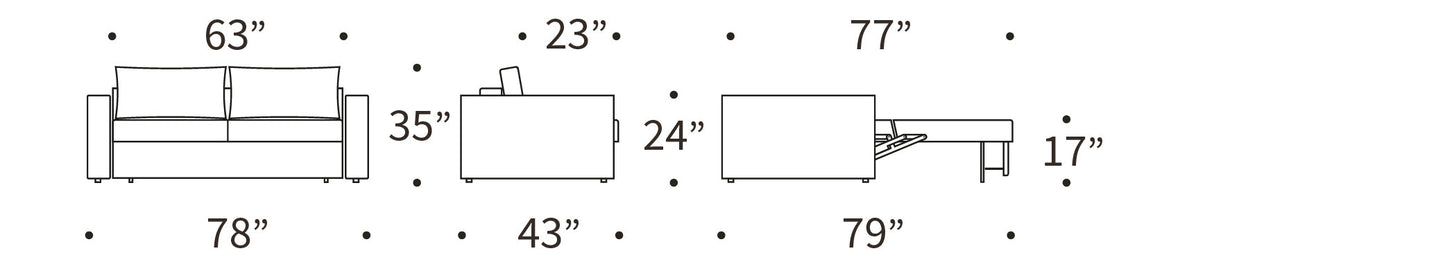 • Queen Bed size: 63" W x 77" L x 17" H