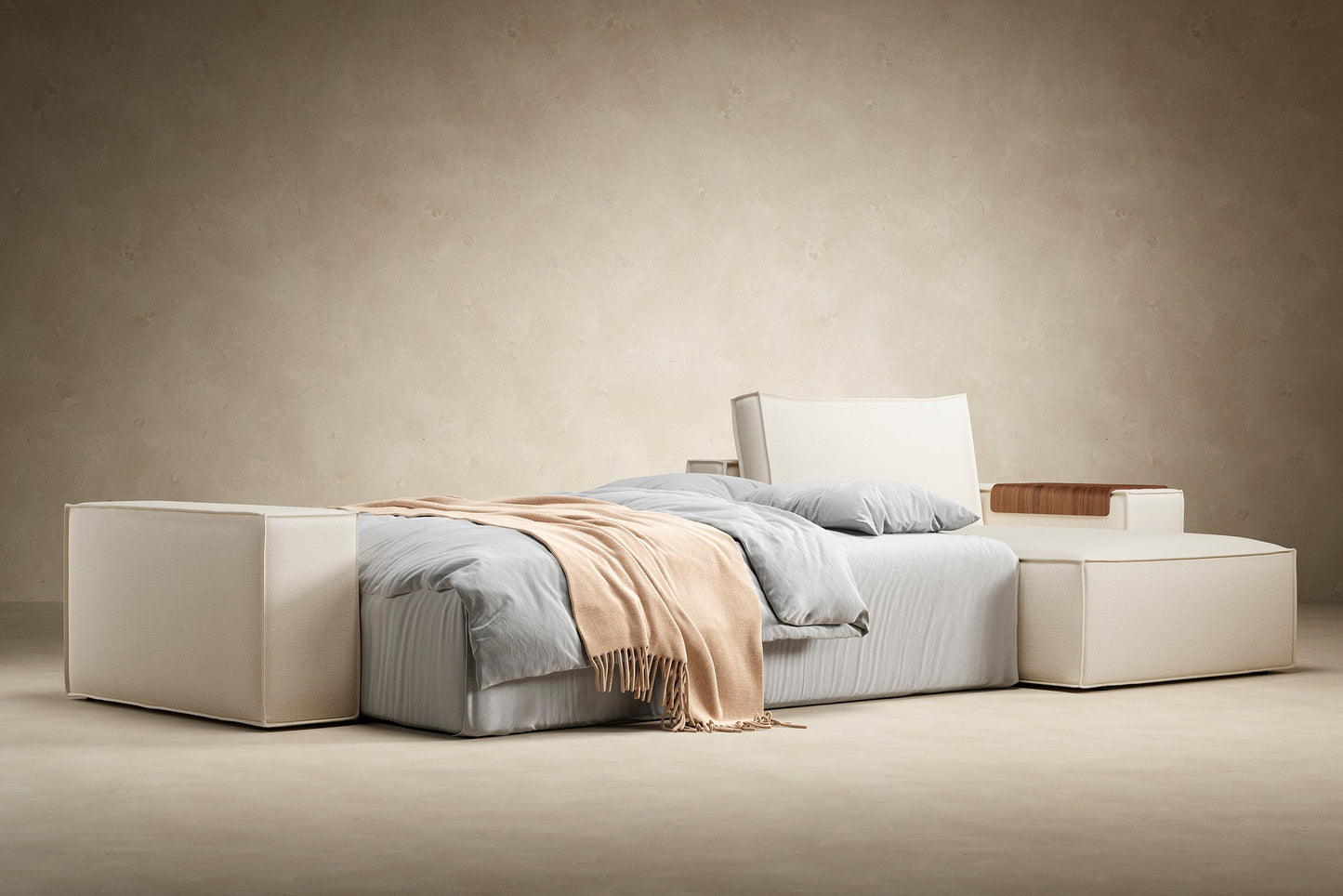 The Newilla sofa bed with Lounger and wide arms encompasses everything you need to create your living area into an entertaining space. Combine it with the walnut wood tray, and turn the arm into an impromptu table.
