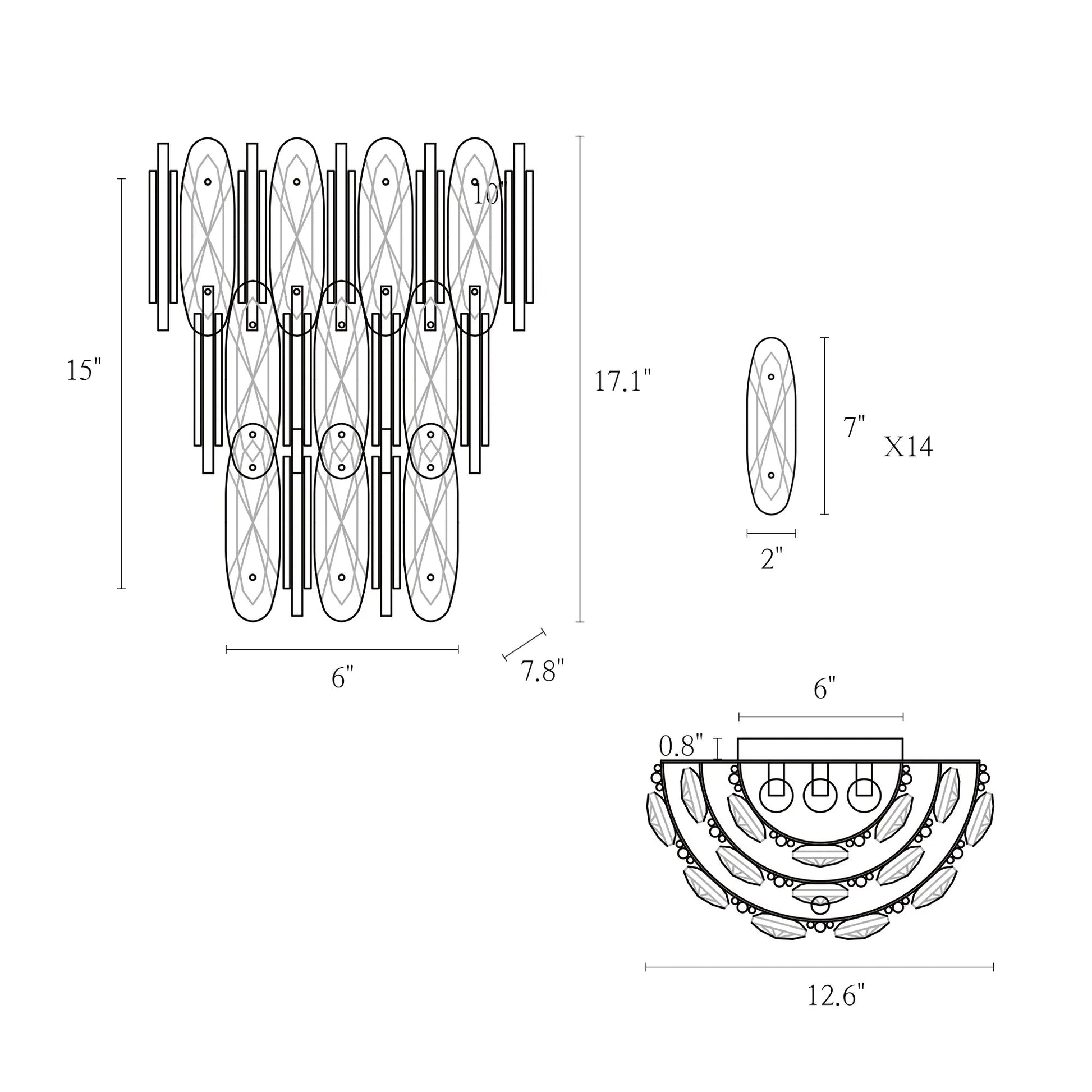 Transform your space with a touch of modern elegance. This stunning crystal wall sconce boasts a captivating design, featuring shimmering oval crystals delicately intertwined with sleek black and gold metal rods. The result? A dazzling display of light and shadow that adds a touch of glamour to any room.