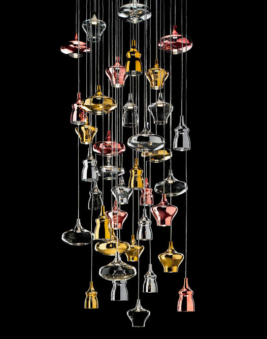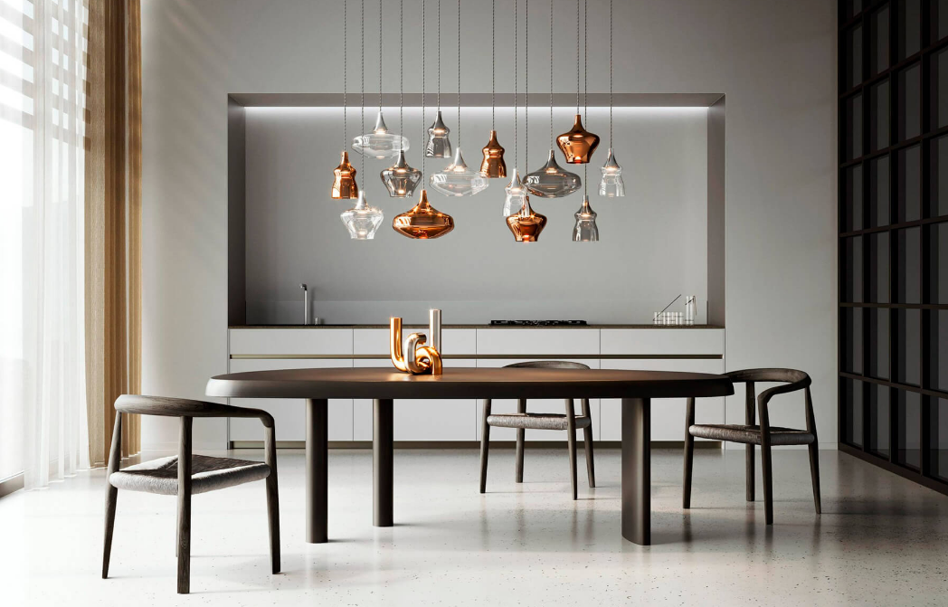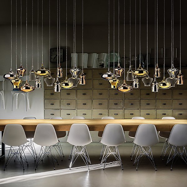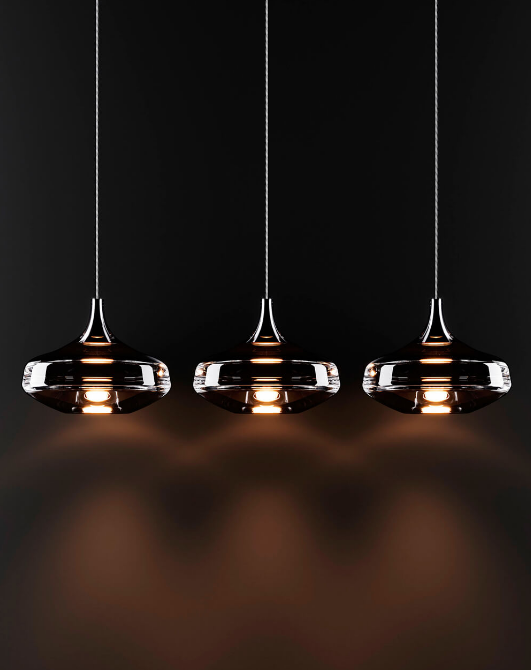 The Nostalgia 03 Pendant, designed by Dima Loginoff, is an elegant representation of ancient glass blowing techniques, the blend retro shapes with modern lines. This versatile piece can stand alone or be grouped together with its sister pendants to create your own unique look. Includes ceiling canopy in white finish. Dimmable with Triac dimmers.