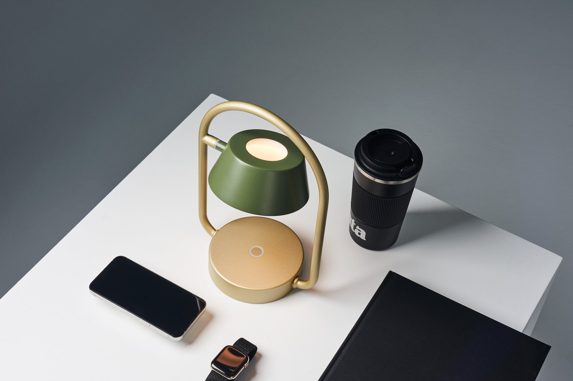 Seed Design USA Olo Ring Portable Table Lamp in Gold and Olive Green