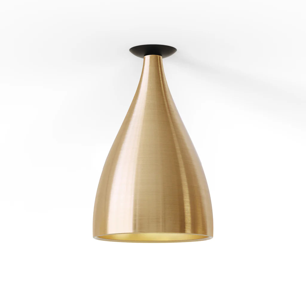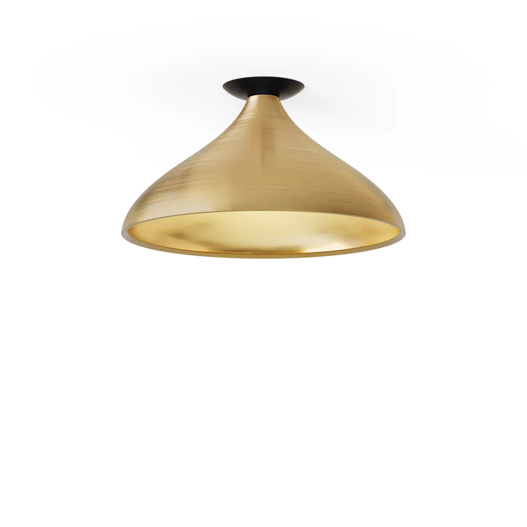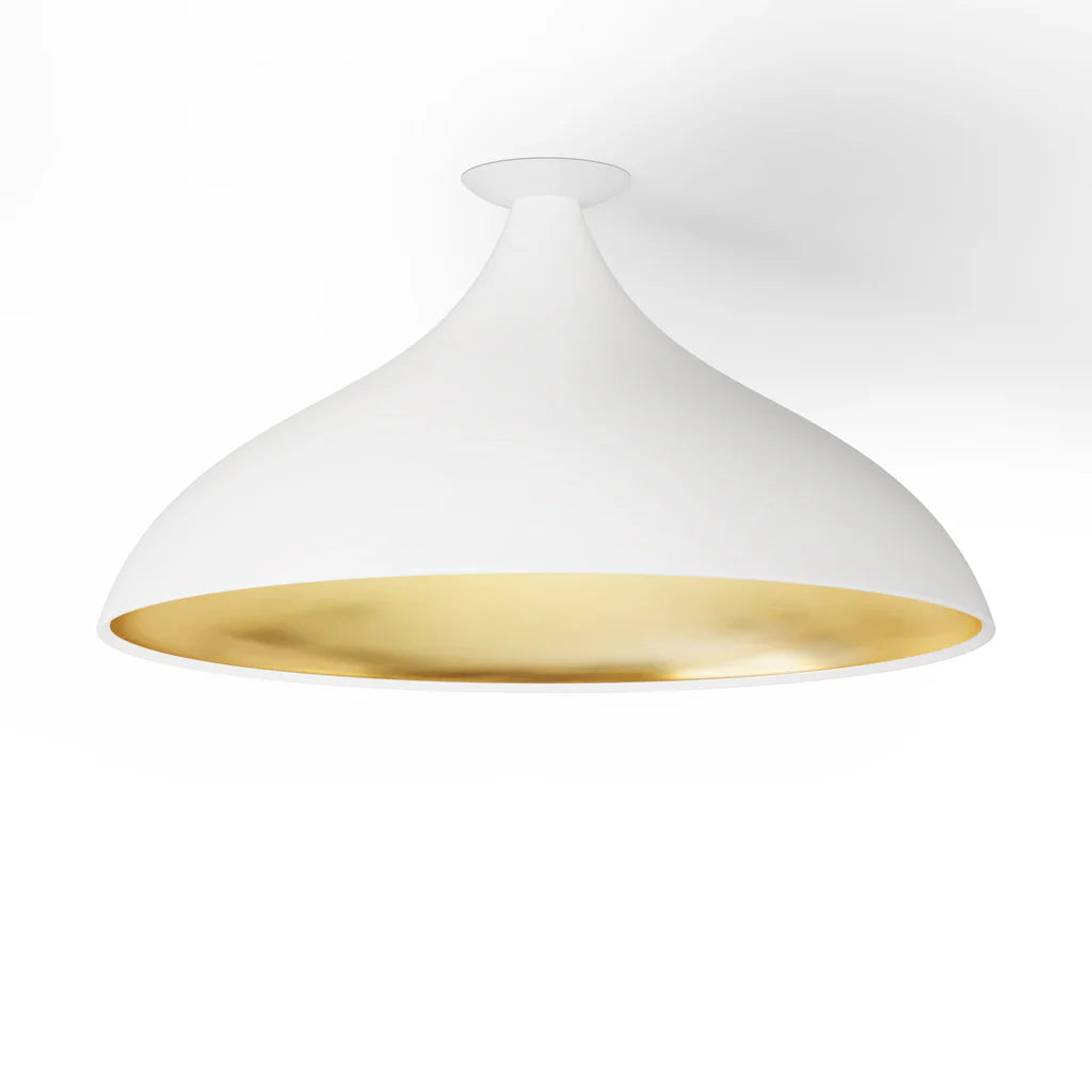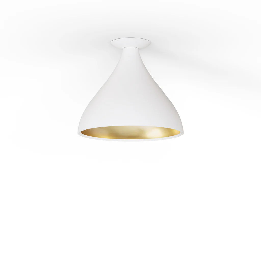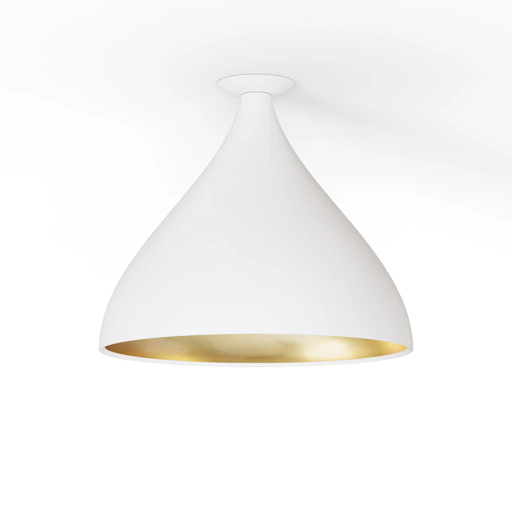 Crafted from spun aluminum with a radiant brass interior, Swell Flush exudes a warm, ambient glow while retaining a crisp, contemporary edge. Available in three distinct shade shapes and finishes—Matte Black/Brass, Matte White/Brass, and Brass/Brass—it invites bold design compositions, whether mounted solo or in linear, clustered, or staggered arrangements.