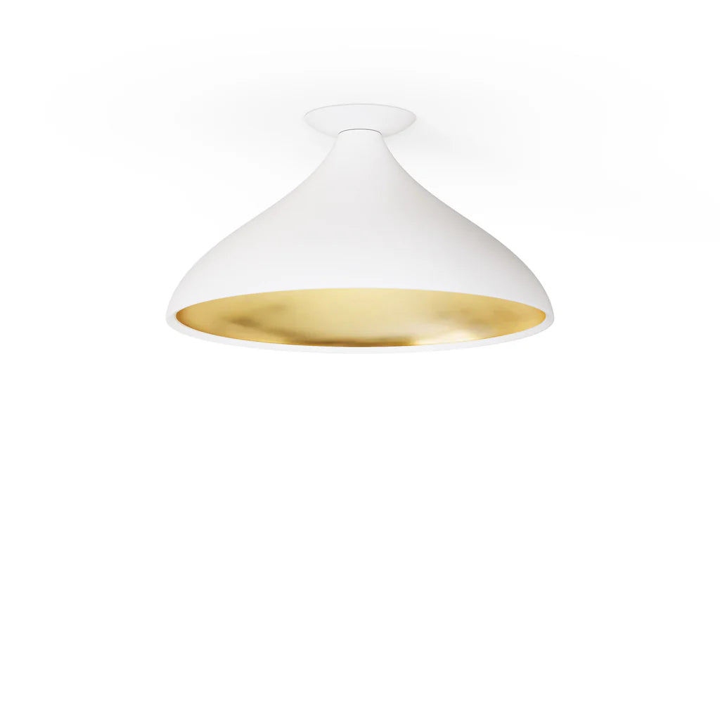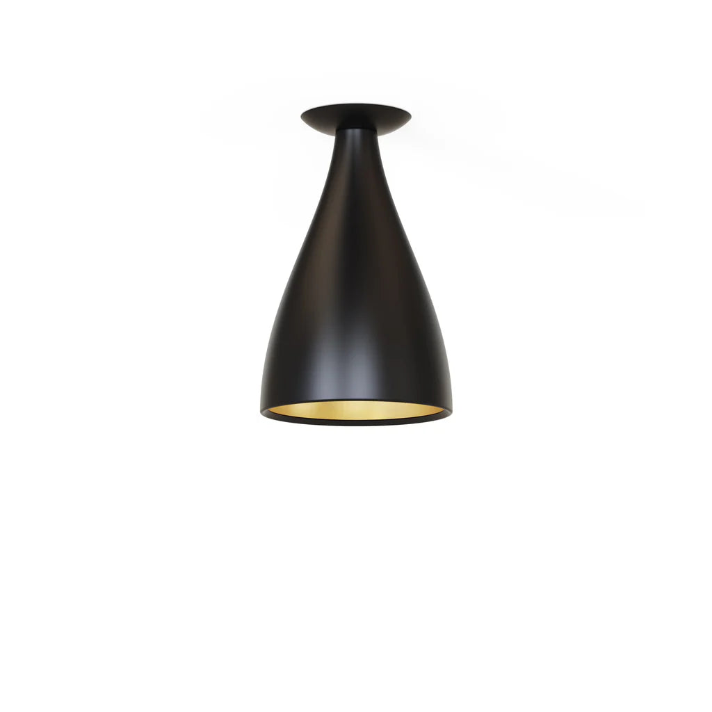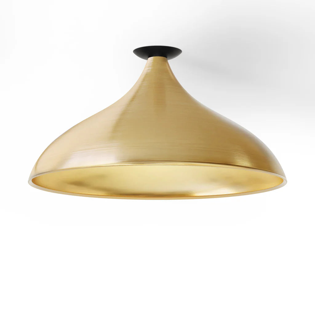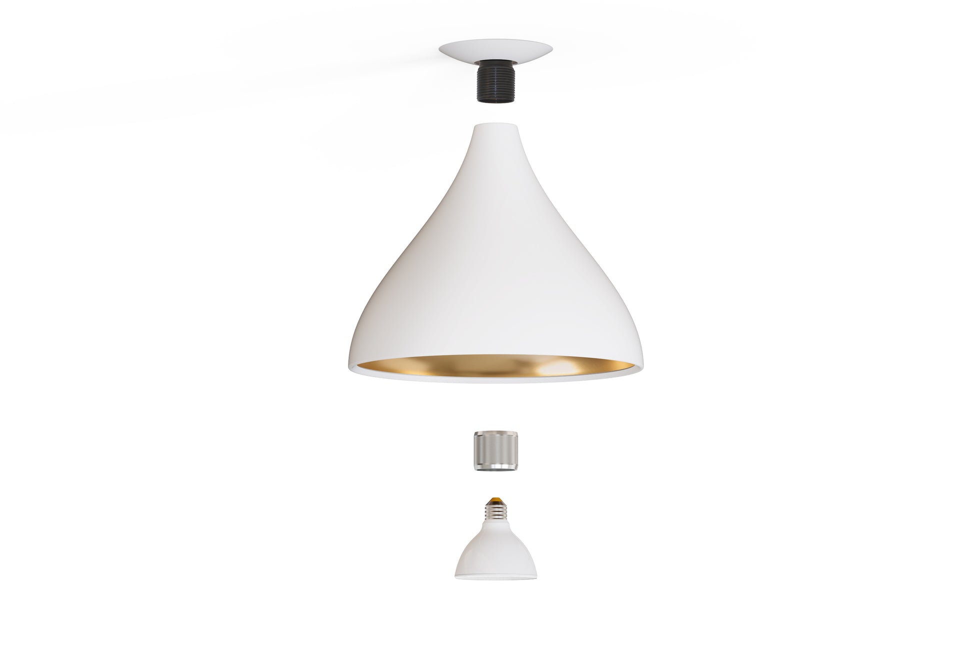 Crafted from spun aluminum with a radiant brass interior, Swell Flush exudes a warm, ambient glow while retaining a crisp, contemporary edge. Available in three distinct shade shapes and finishes—Matte Black/Brass, Matte White/Brass, and Brass/Brass—it invites bold design compositions, whether mounted solo or in linear, clustered, or staggered arrangements.
