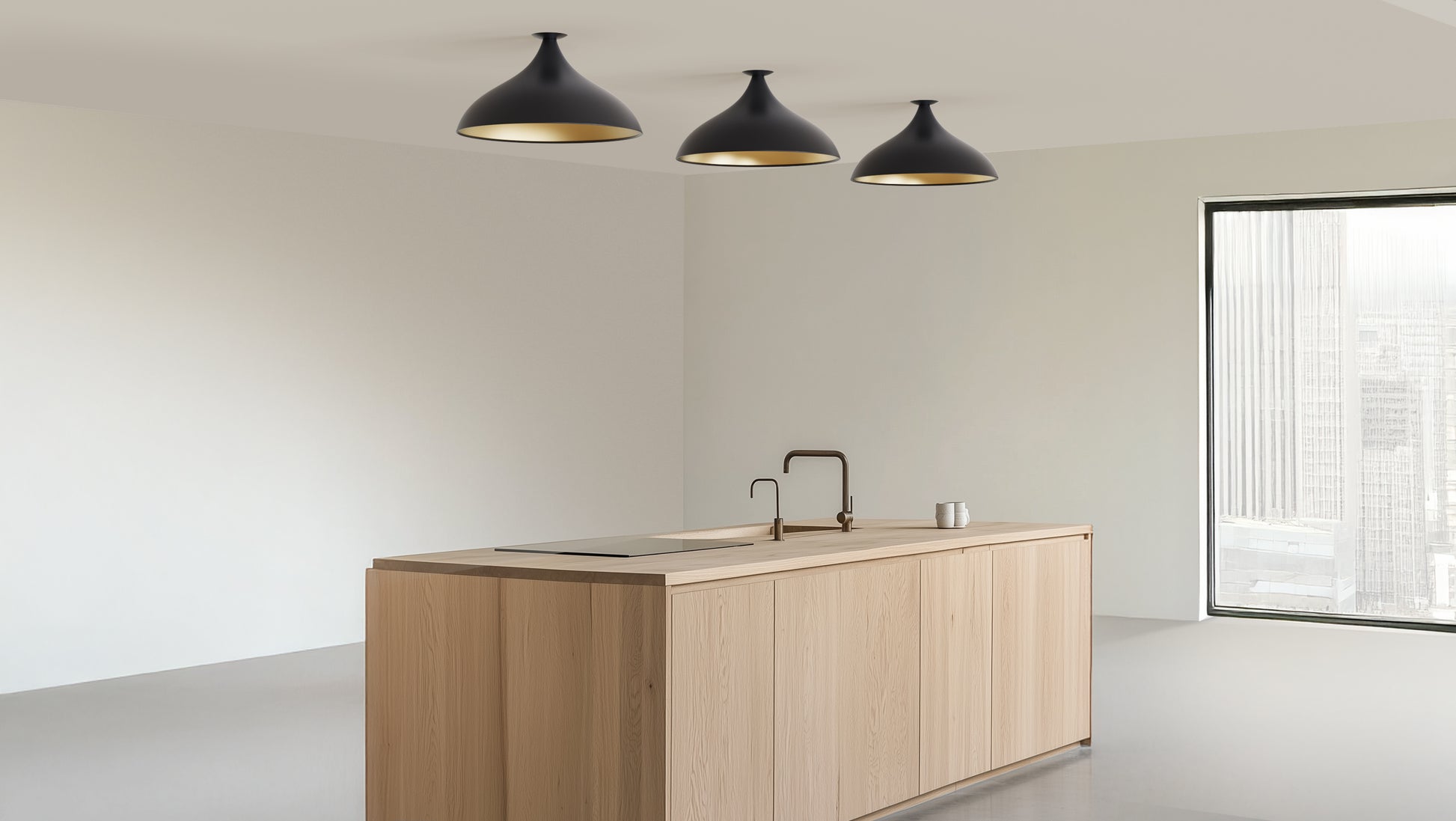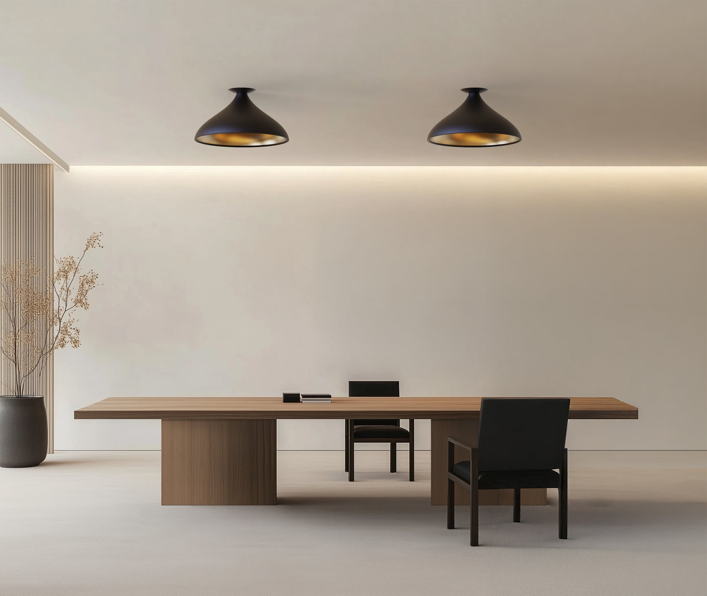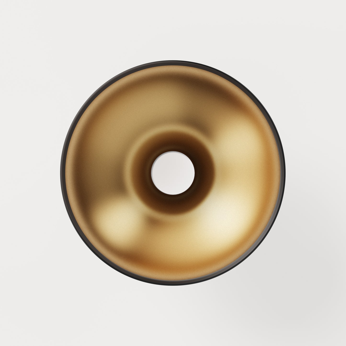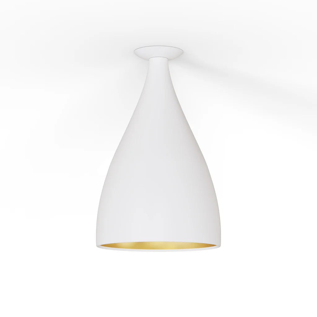 Crafted from spun aluminum with a radiant brass interior, Swell Flush exudes a warm, ambient glow while retaining a crisp, contemporary edge. Available in three distinct shade shapes and finishes—Matte Black/Brass, Matte White/Brass, and Brass/Brass—it invites bold design compositions, whether mounted solo or in linear, clustered, or staggered arrangements.