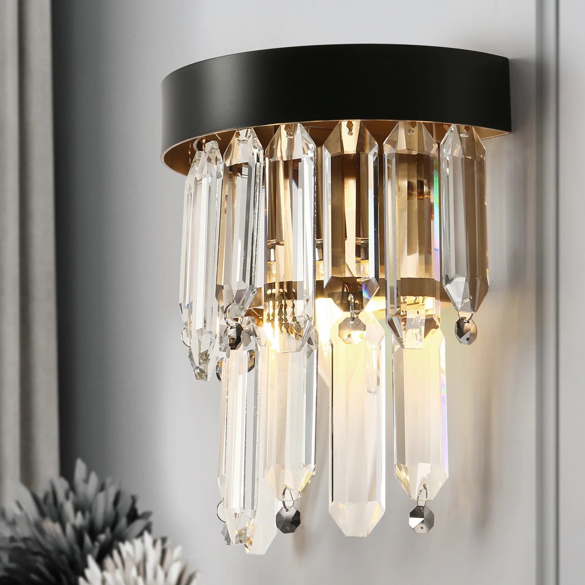 Phesonlaxy Glam Black and Brass Crystal Wall Sconce by LNC Home