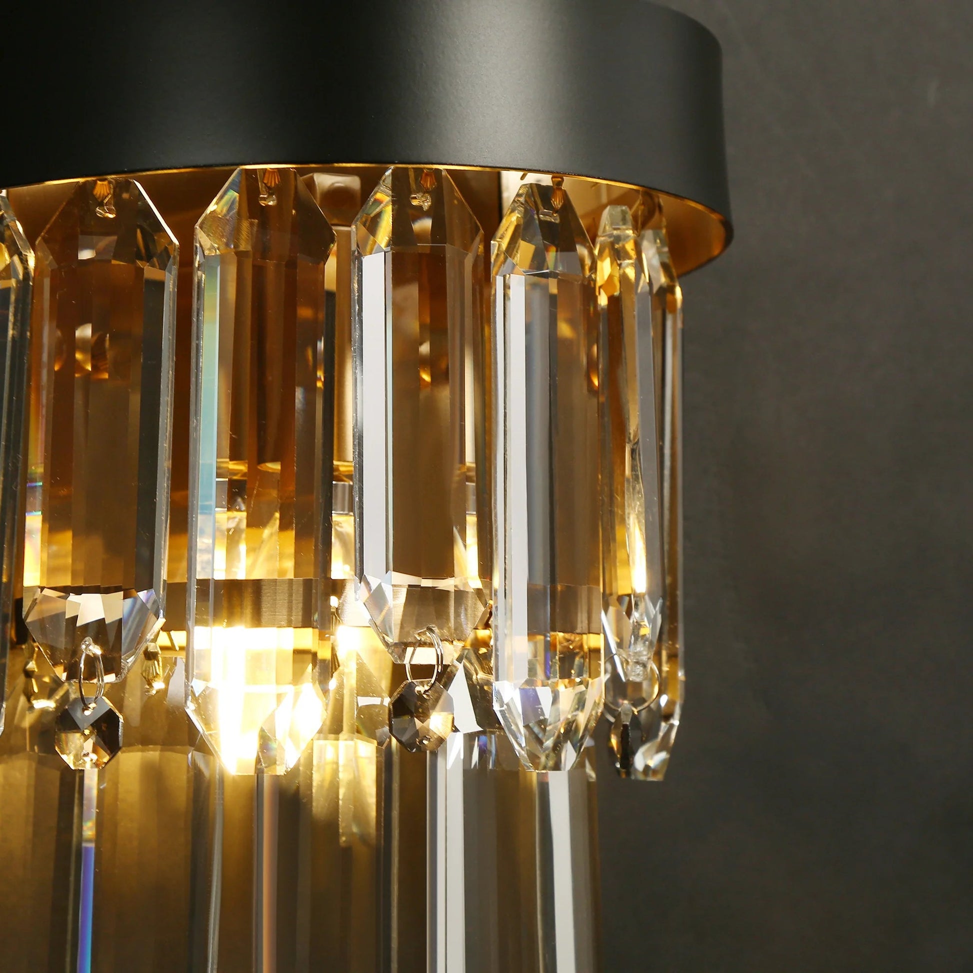 • Exquisite Design: Inspired by the Art Deco era, this sconce features a welded iron frame adorned with cascading crystal prisms for a touch of vintage glam.