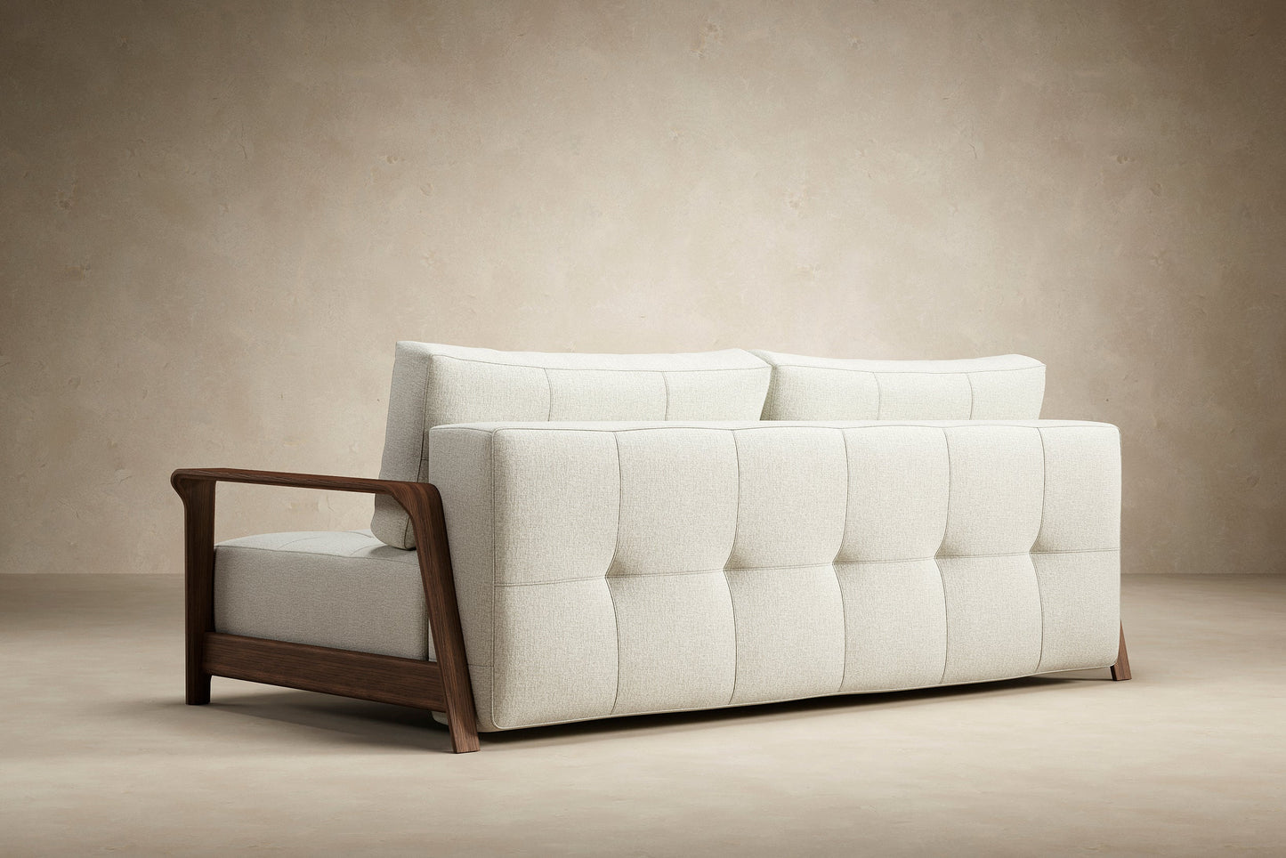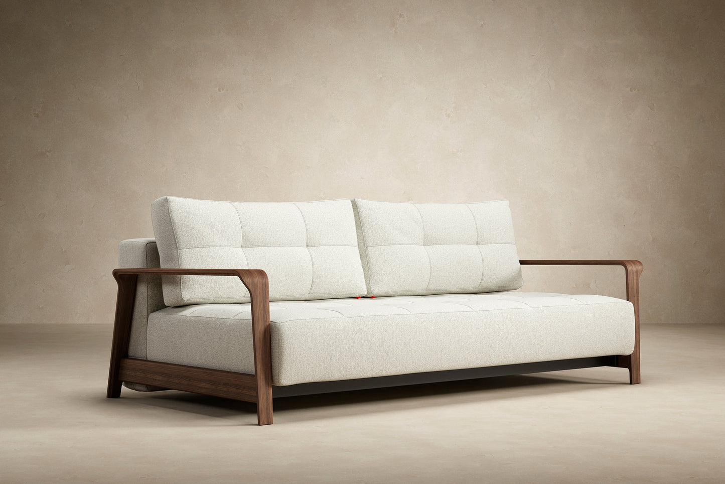 A Mid-Century design from Innovation Living. Featuring curved craftsmanship of warmhearted walnut arms and an excess comfort, Ran D.E.L. is an elegant everyday sofa and bed at any time, in any room.