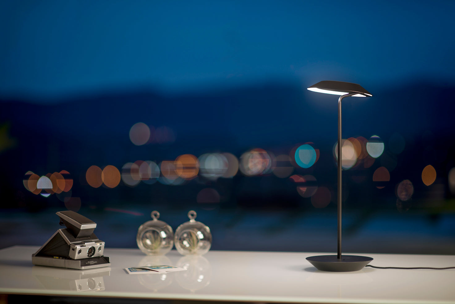 The Royyo Desk lamp adds an elegant flair to any space with its minimal wiring and pleasing circular design. Its minimal silhouette houses complex inner technology for a marriage of form and functionality. Royyo's embedded USB port allows users to charge any USB- compatible device. Interchangeable base plate options allow users to customize at ease. Achieve unity in design by inviting the Royyo Floor Lamp, Royyo Pendant and Royyo Desk Lamp into your home.