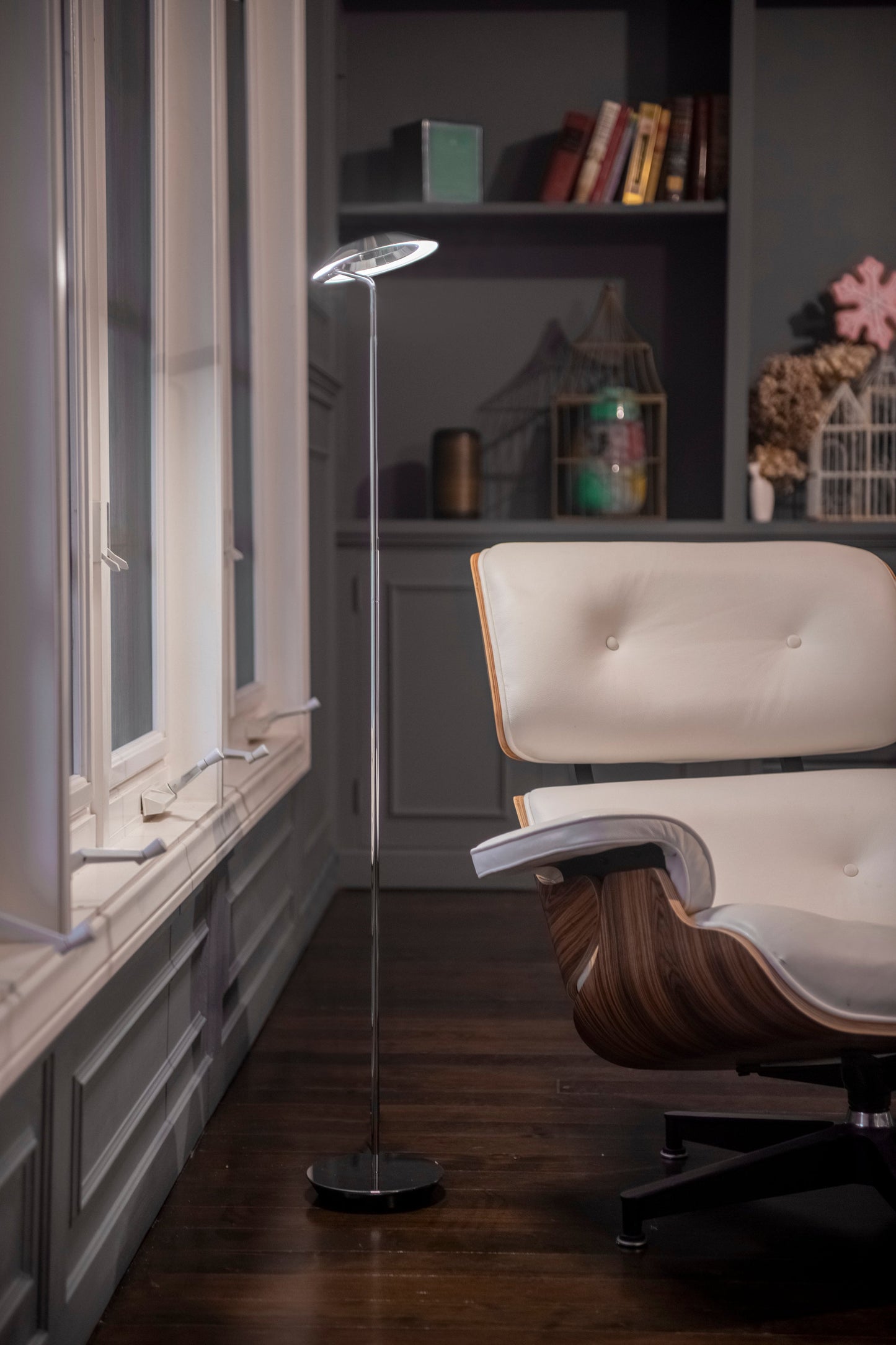 The Royyo Floor lamp adds an elegant flair to any space with its minimal wiring and pleasing circular design. Its minimal silhouette houses complex inner technology for a marriage of form and functionality. Royyo's embedded USB port allows users to charge any USB- compatible device. Interchangeable base plate options allow users to customize at ease. Achieve unity in design by inviting the Royyo Desk Lamp, Royyo Pendant and Royyo Floor Lamp into your home.