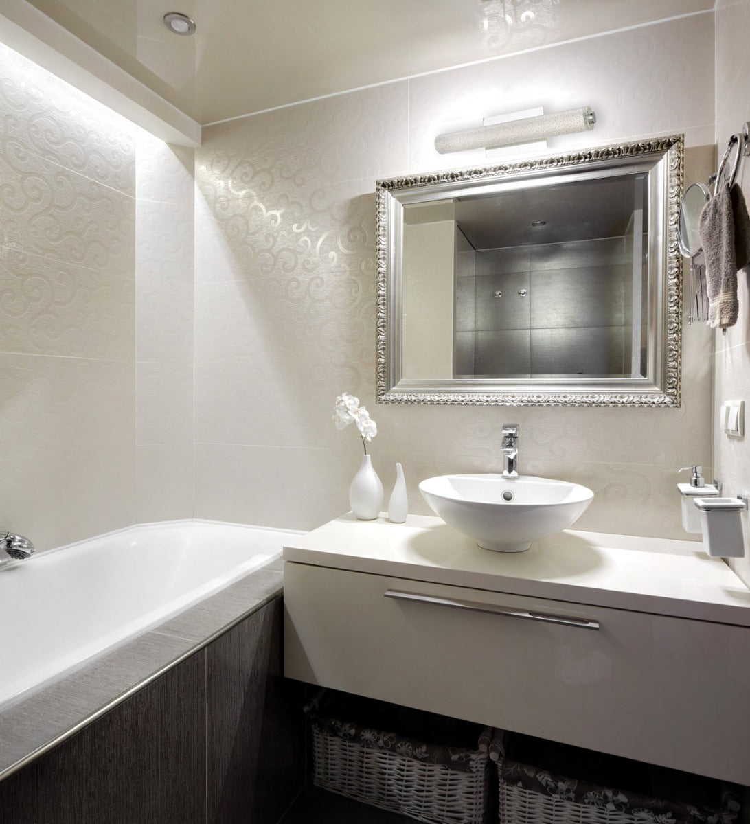 The Sabre series of line-voltage vanity fixtures produced from aluminum extrusion and hand-brushed to provide a unique textured look, available in both Brushed Aluminum and Chrome. A full floating cover plate is available for use on offset junction boxes, and the fixture is fully dimmable with most dimmers. Install this versatile fixture in a variety of interiors and applications for excellent task lighting.