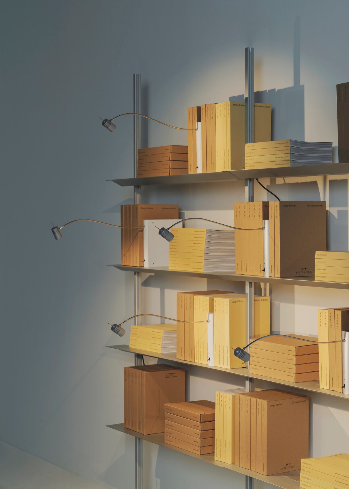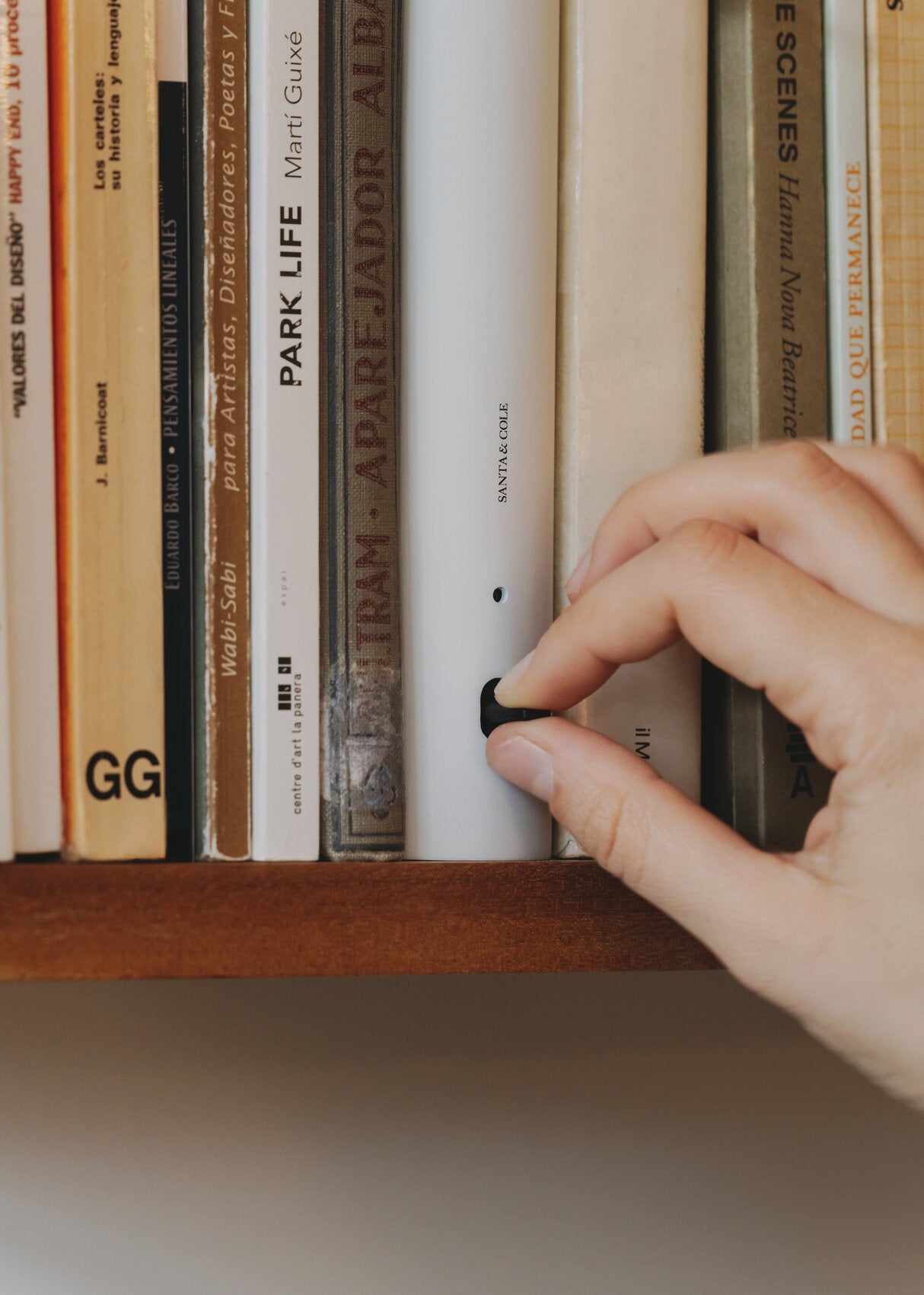 Discover the ingenious Bib Luz Wall Light by Oscar Tusquets for Santa & Cole. This innovative fixture blends seamlessly into your bookshelf, offering focused light and artistic flair. Inspired by a book, the Bib Luz is a conversation starter and practical lighting solution.