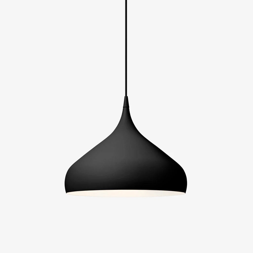 The spinning-top toy, a childhood favorite, inspires to the joyful form of the Spinning pendant along with the process of metal spinning. Here, form truly meets function in an innovative way. Pendants are lathe-spun in the manufacturing process and retain that sense of movement. Available in two different sizes and each in three different colors.