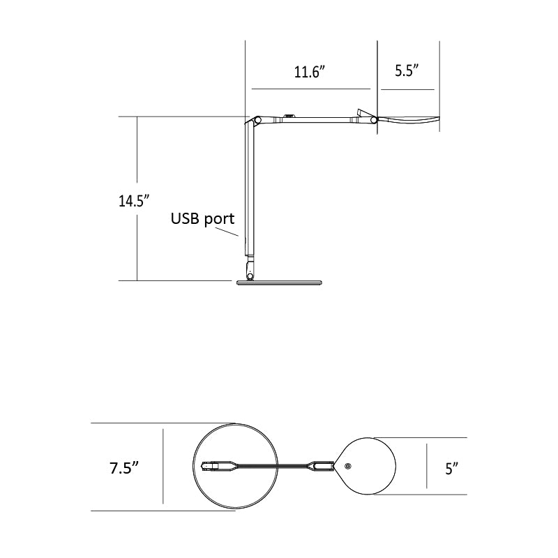 • Conveniently located in the lower body of the lamp. A USB port charges any compatible device.