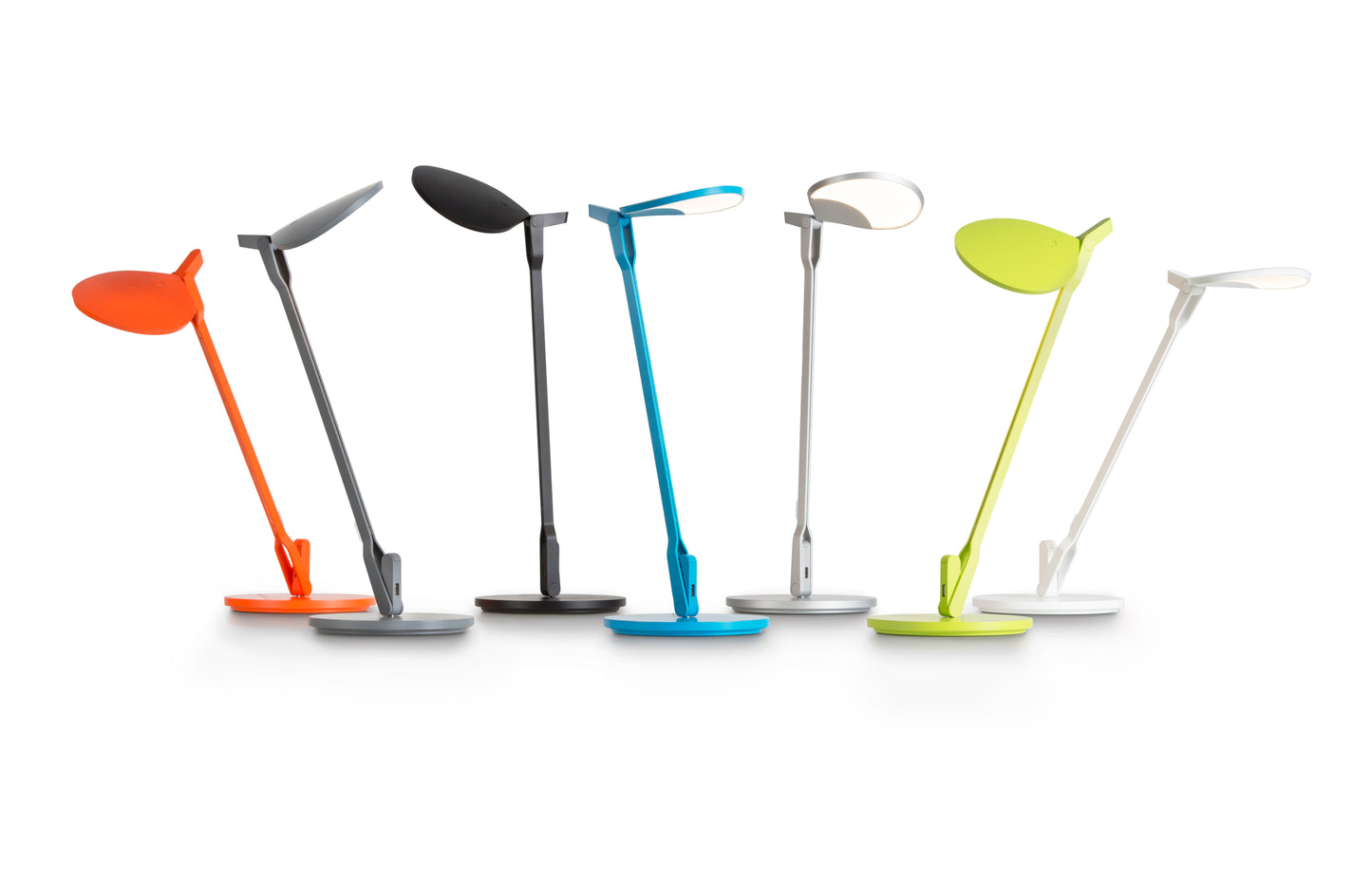 Inspired by the fluidity and formlessness of water droplets, Splitty Desk Lamp features fluid motion and ultra flexibility. The curved, droplet shape of the LED head reflects the root of its inspiration. It can be posed in virtually limitless ways, making it one of the most flexible lights on the market. Koncept designers perfected the diffused light source with hidden LEDs so that the lamp performs as a radiant ambient light as well as a functional task light. Users can avail of the discreet USB port to charge any compatible devices.