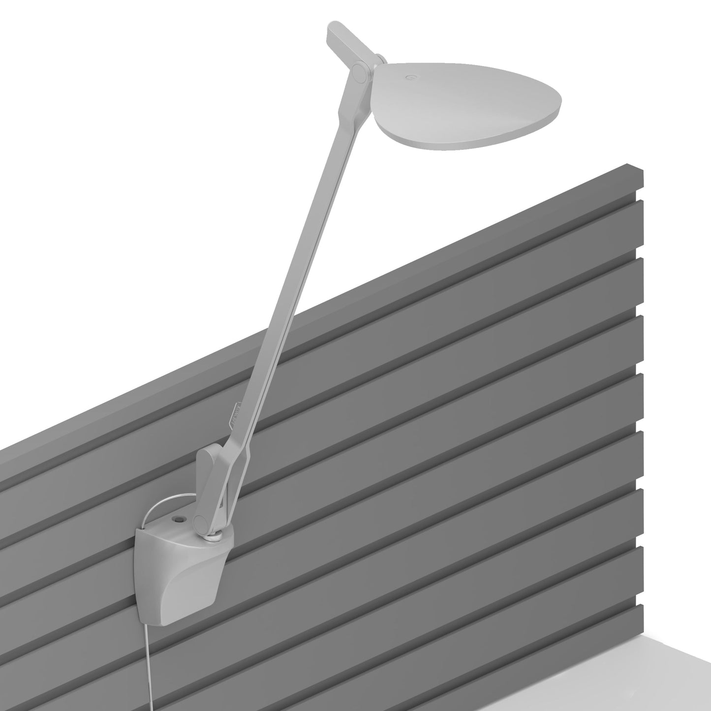 Inspired by the fluidity and formlessness of water droplets, Splitty Desk Lamp features fluid motion and ultra flexibility. The curved, droplet shape of the LED head reflects the root of its inspiration. It can be posed in virtually limitless ways, making it one of the most flexible lights on the market. Koncept designers perfected the diffused light source with hidden LEDs so that the lamp performs as a radiant ambient light as well as a functional task light. Users can avail of the discreet USB port to charge any compatible devices. The slatwall mount allows the lamp to be mounted to slatwalls of various sizes.
