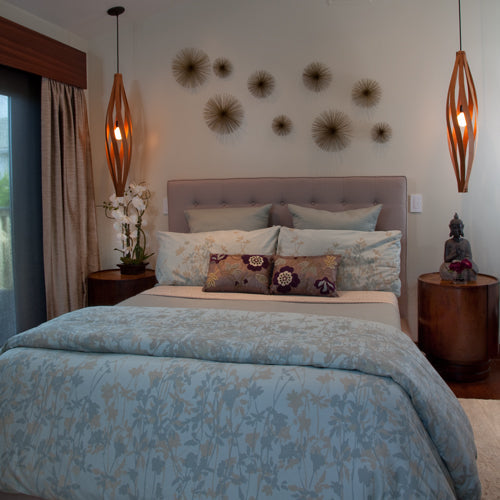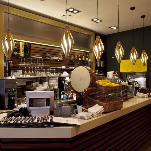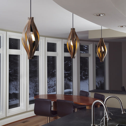 The Iris Pendant Light features elegantly curved wooden leaves, inspired by nature to create a perfectly balanced, eye-catching design. With various finishes and dimensions, each pendant casts warm, ambient shadows, adding character to any space—ideal as a statement piece or grouped for a dramatic effect.
