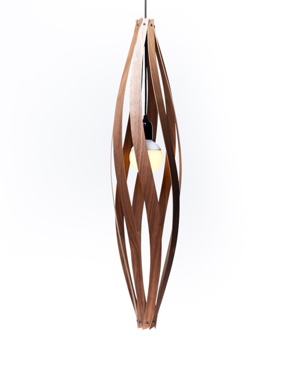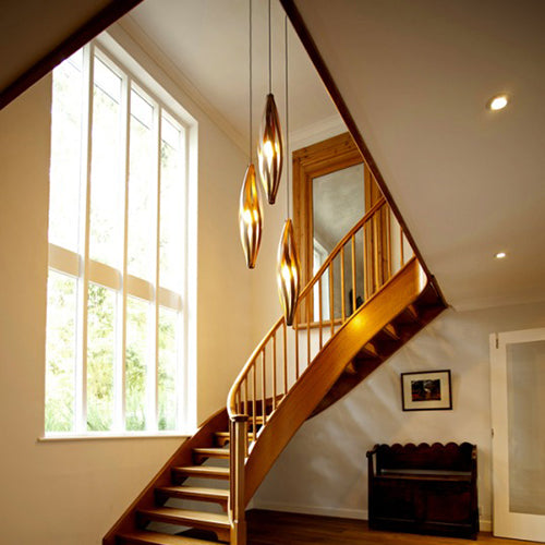 Ideal for illuminating stairwells and tall ceilings, this pendant light is not only visually appealing but also serves as an effective lighting solution. Its innovative construction utilizes thin, durable timber laminations, prioritizing sustainability without compromising on elegance.