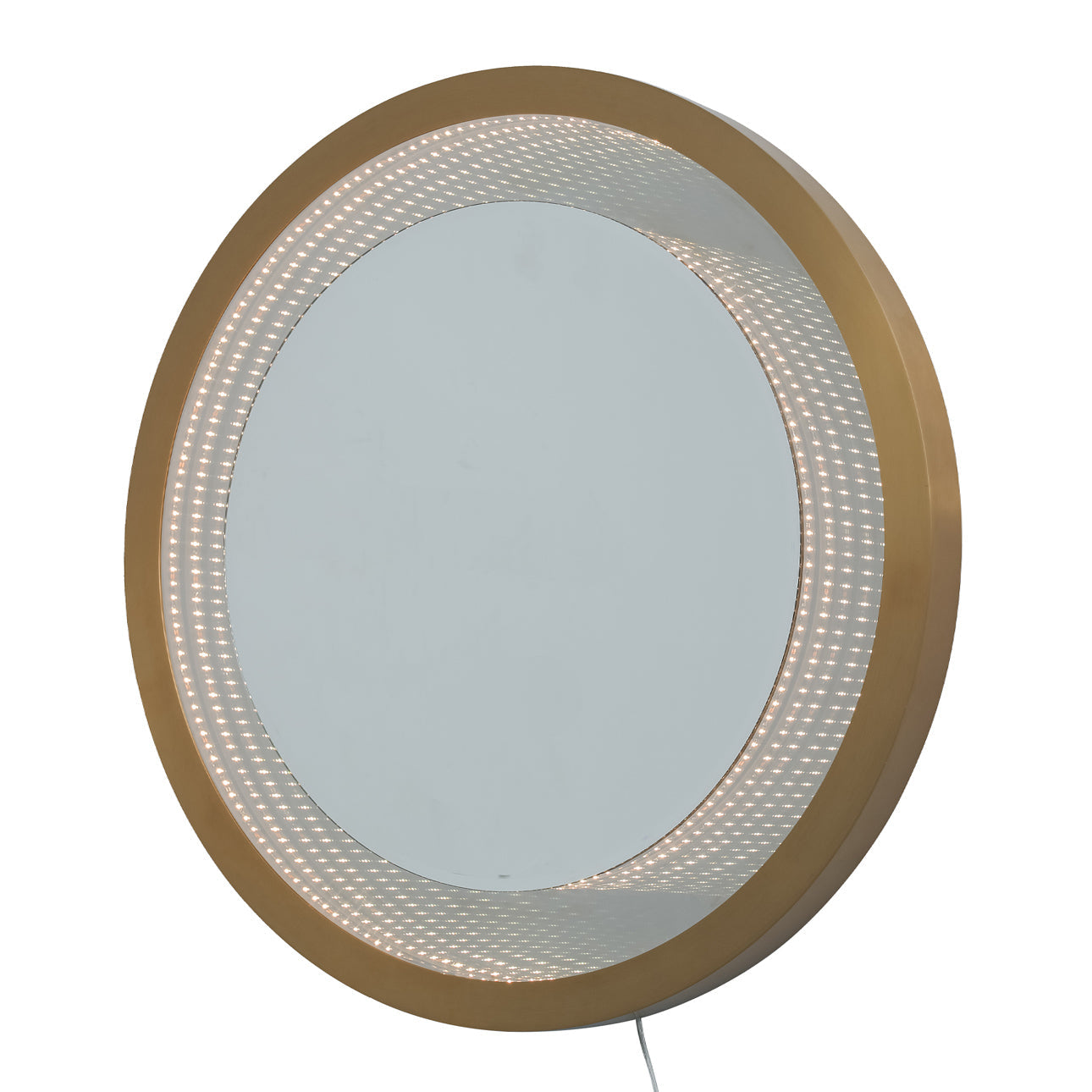 Starfall Vanishing Infinity LED Round Wall Mirror In Brass by Nova California