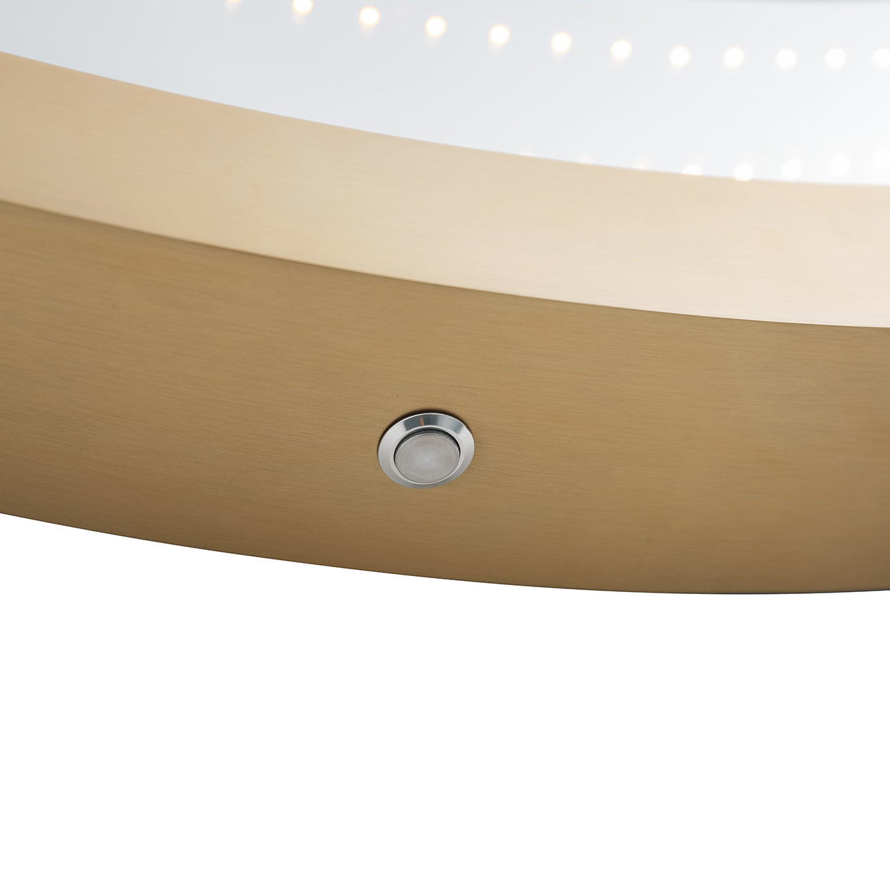 The Starfall Infinity Wall Mirror is not only a fully functional mirror but also a beautiful work of art, and light source. With its oversized 39" size, it is the perfect fit for placing over sofas and sectionals, adding multifunctional décor to any wall. The large circle of LED bulbs surrounding the mirror creates a mesmerizing illusion of never-ending light. The functional mirrored center elegantly reflects the user, enhancing the experience with the radiant circle of light around it. Its brushed brass frame complements modern, transitional, and mid-century decors, adding a touch of sophistication and magic to any space. Additionally, the Starfall Infinity Mirror is designed with modern convenience in mind, and is Smart switch compatible, allowing the mirror to be turned on/off manually, by voice activation, or by scheduled settings