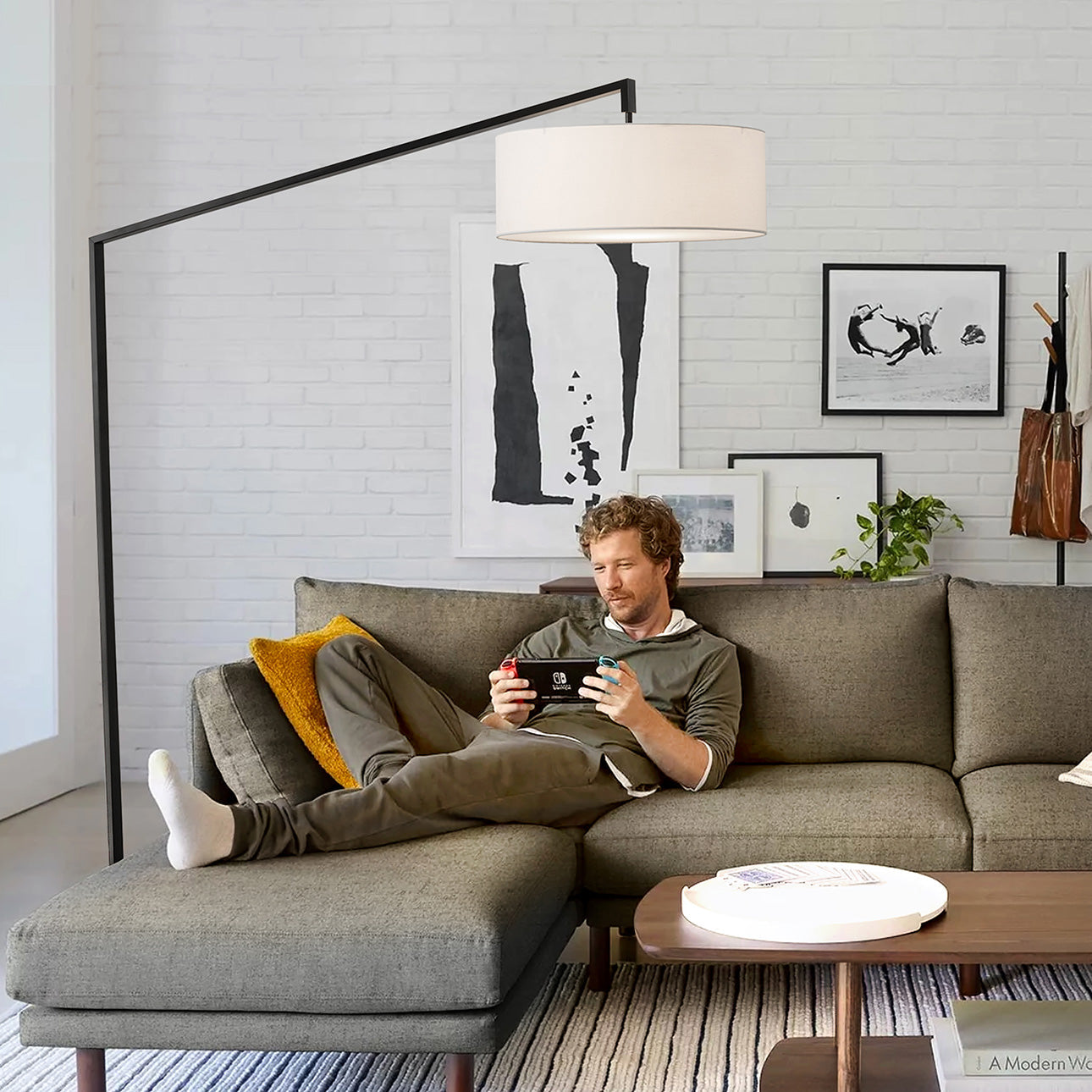 The Stretch Chairside Arc Lamp fits effortlessly into modern, contemporary, and transitional living rooms.