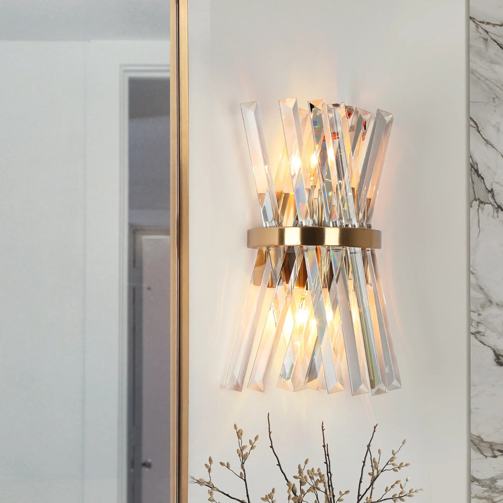Capture the Sparkle: Tadonipkeseismo 2-Light Crystal Tube Wall Sconce (Brass) - HA05034 - LNC Home